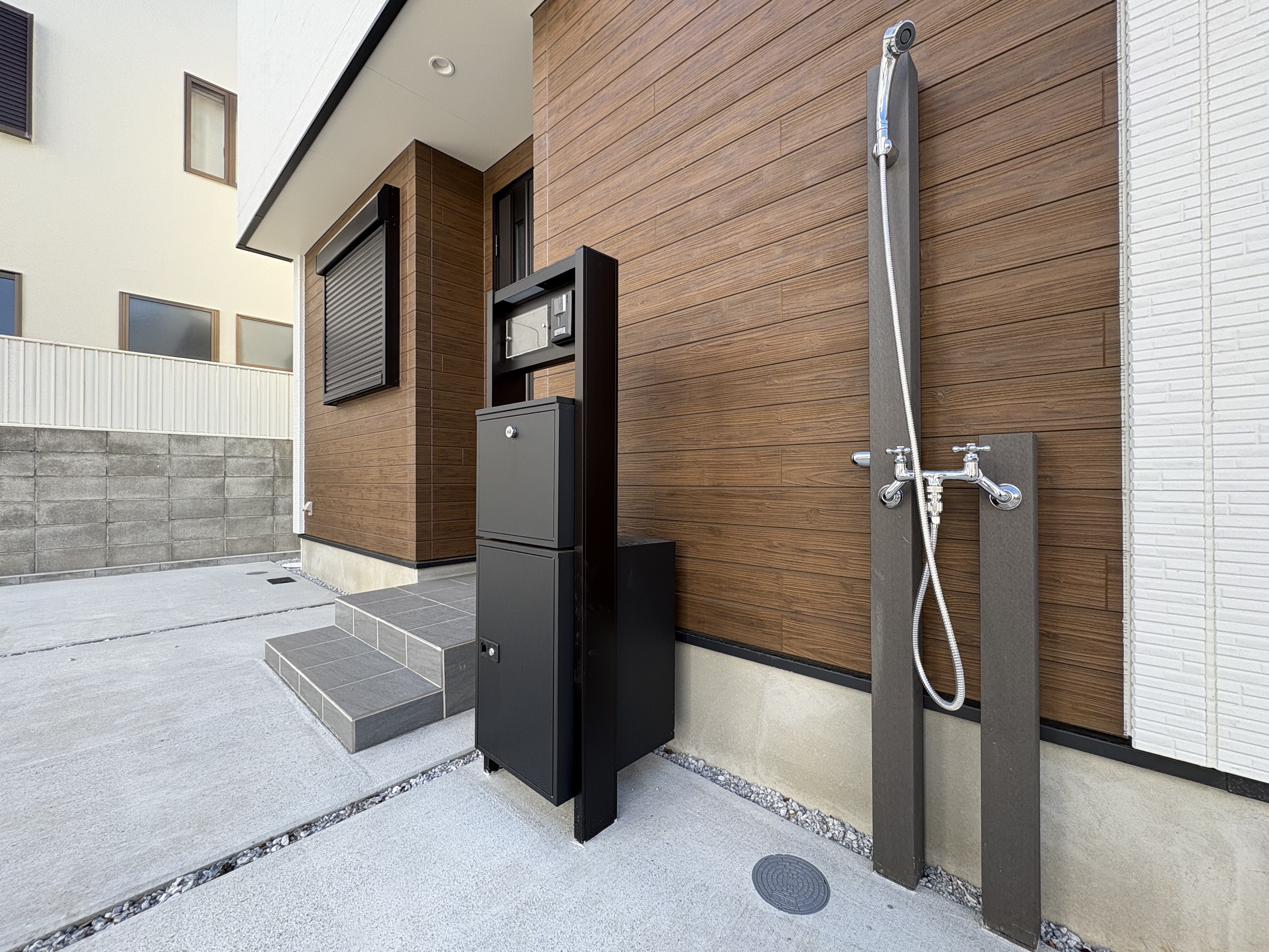 海まで徒歩11分(約880m)で、玄関前には嬉しい外シャワー付き。