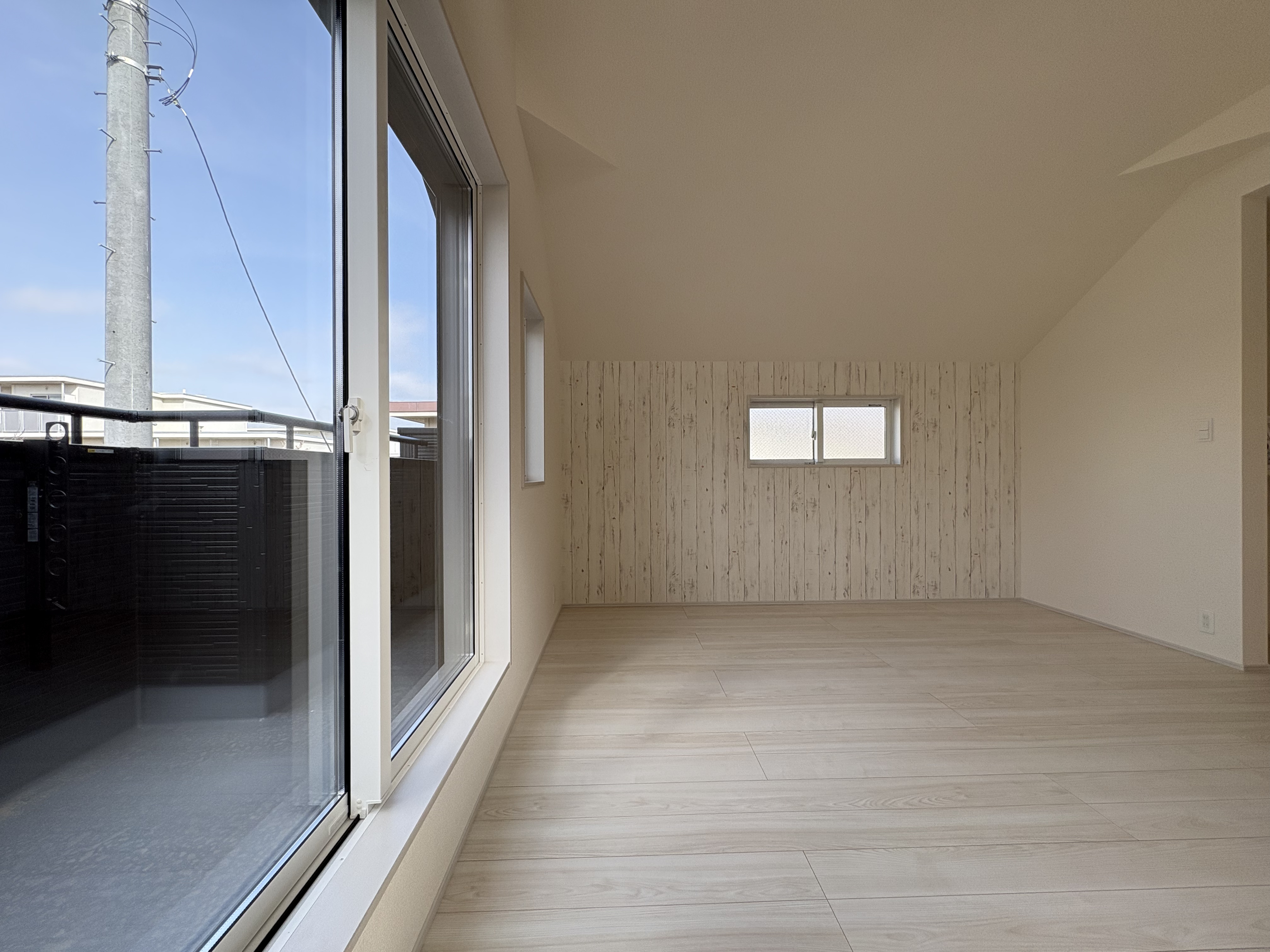 天井を屋根の形に合わせて高くすることで、数値以上の開放感を実現しています。