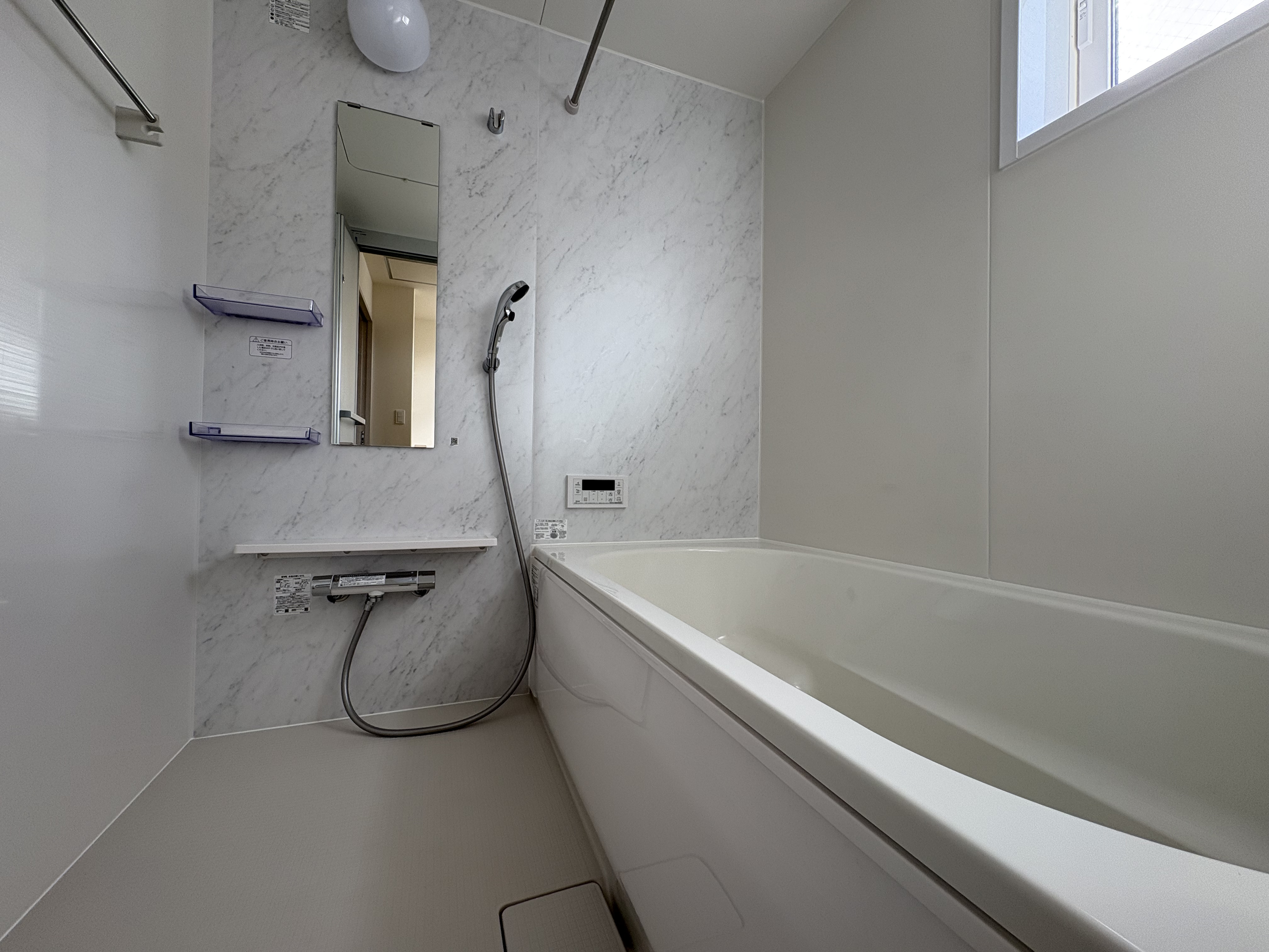 帰宅後は外シャワーを浴び、浴室でリラックス。