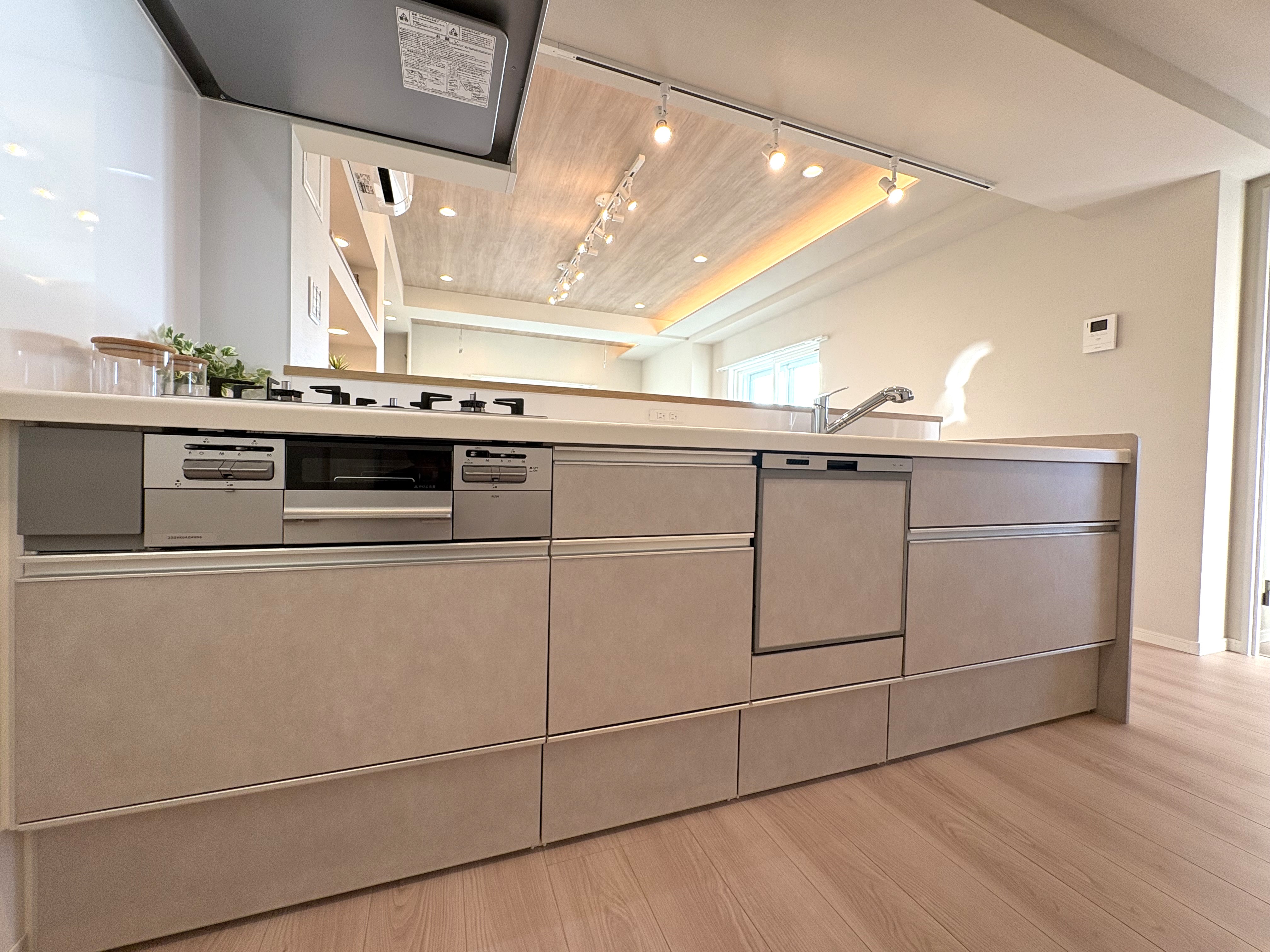 システムキッチンには食洗機を備え、インナーサッシの採用により、海岸沿いながらも静謐なひとときを。