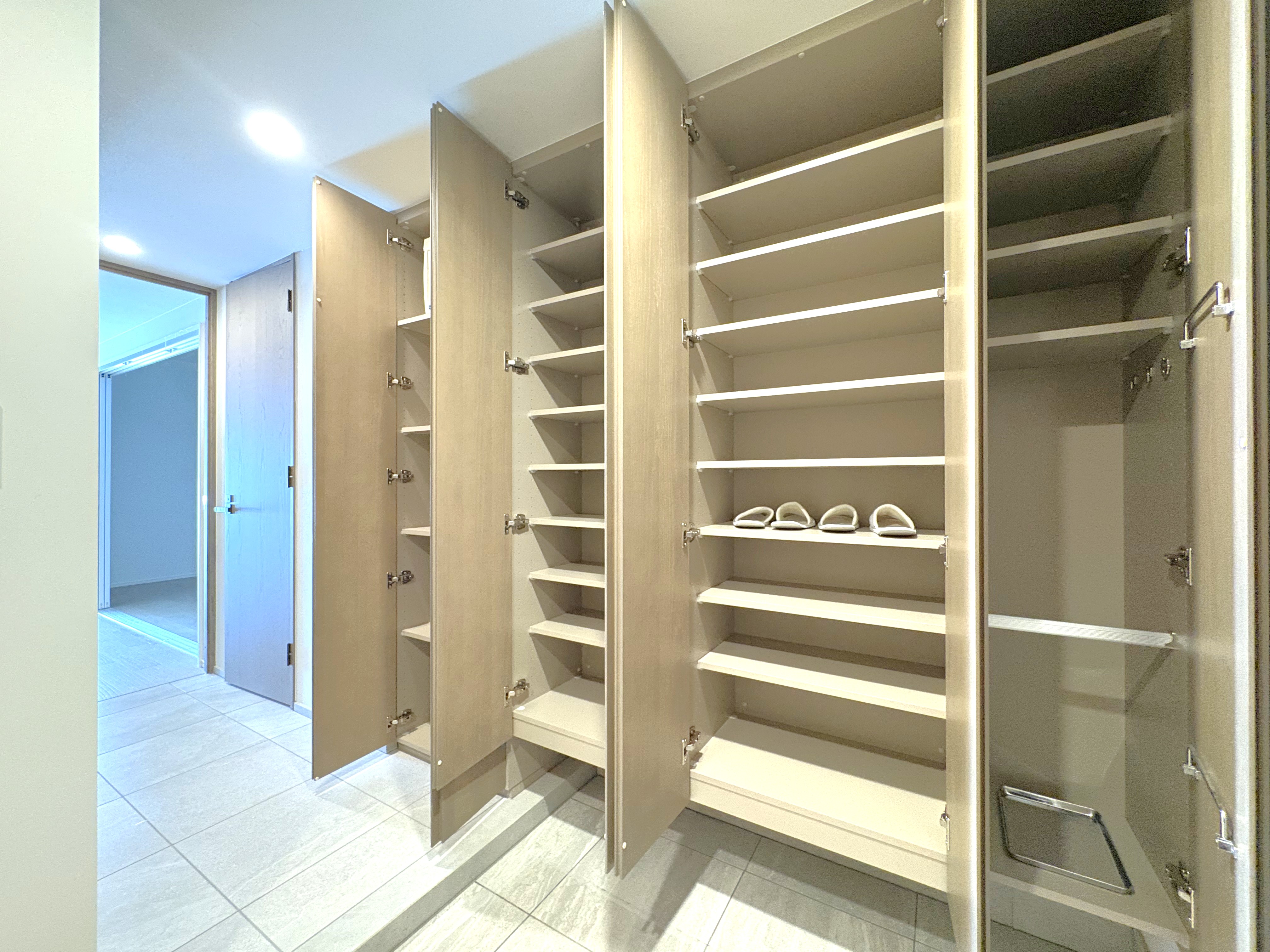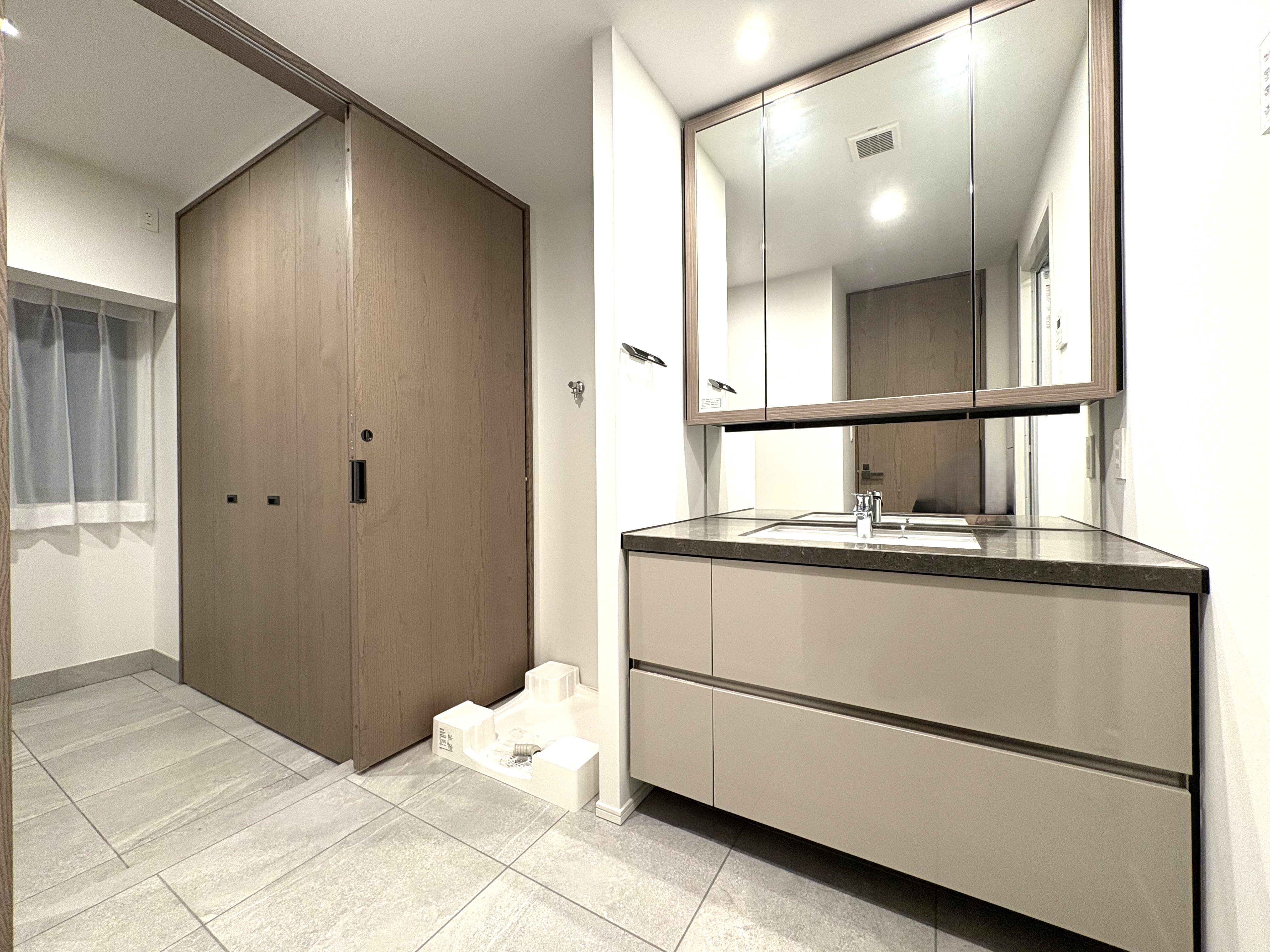 玄関にはアウトドア用品を収納できるインナーガレージを備え、そのまま洗面室へと出入りできる動線となっております。