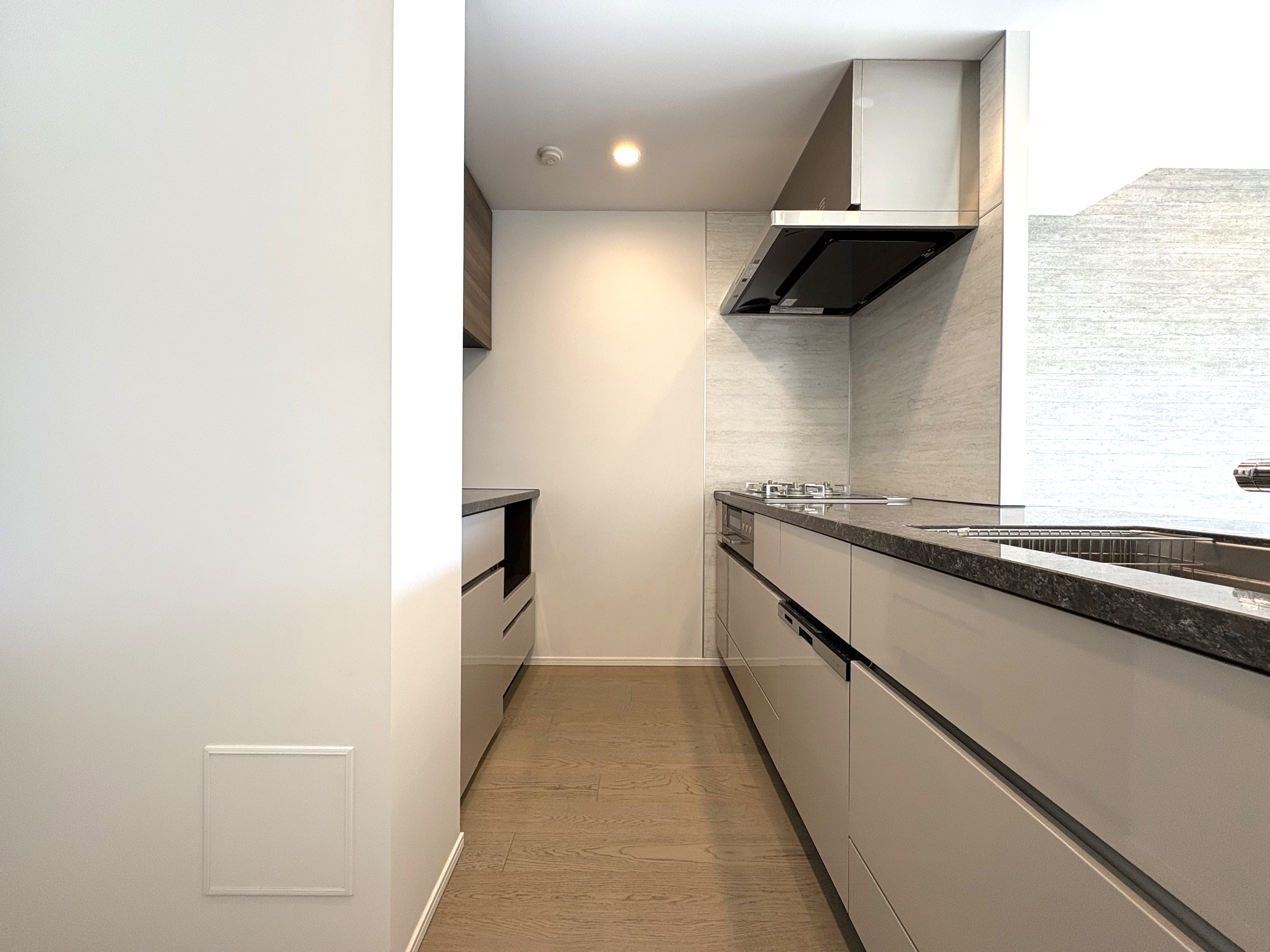 対面式のキッチンからはリビング全体を見渡せ、家族の語らいを楽しみながら料理を進めることができます。