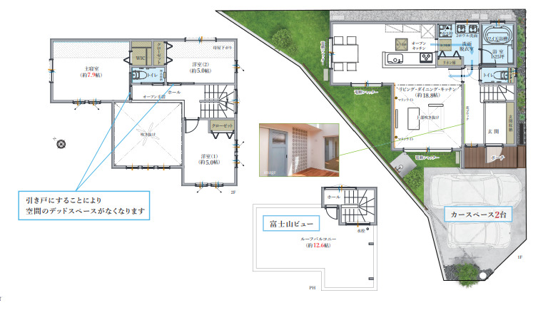 《富士山を望む「大型ルーフバルコニー」》