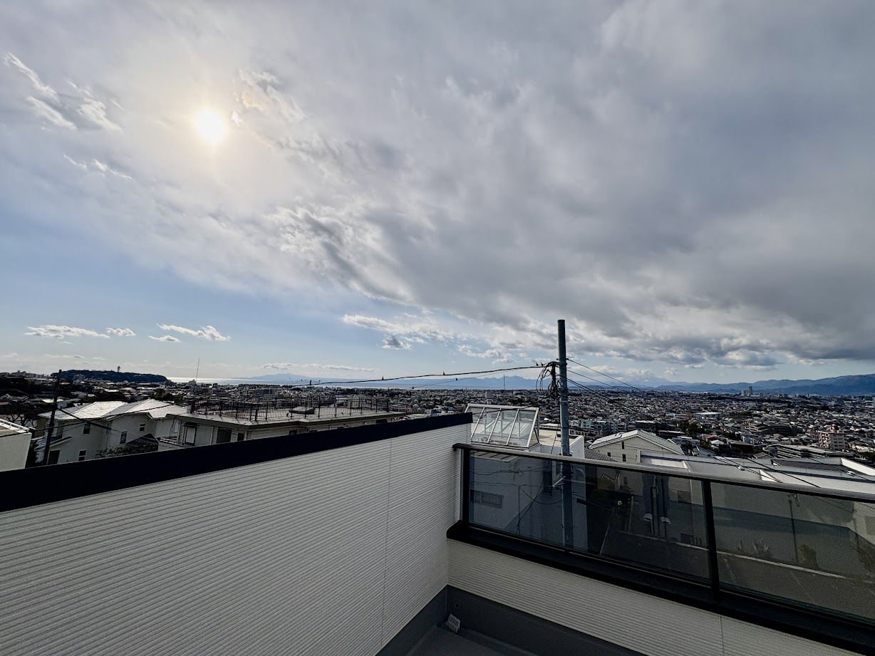 「空と海が溶け合うルーフバルコニー。江の島の花火も、夕暮れの富士も」