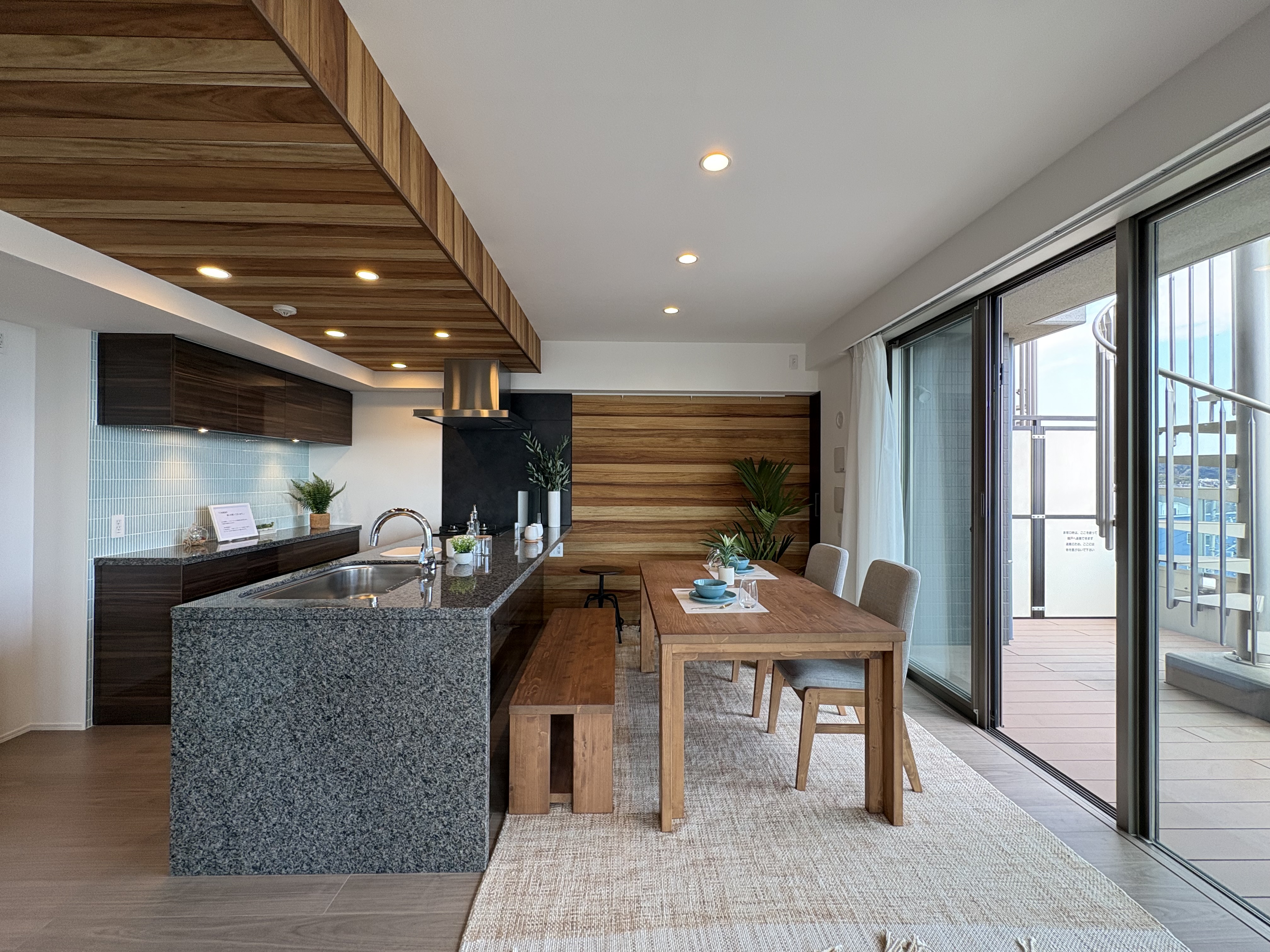 専用使用権付きのスカイビューテラスがあり、アウトドアスペースながらプライベート感のある空間に。