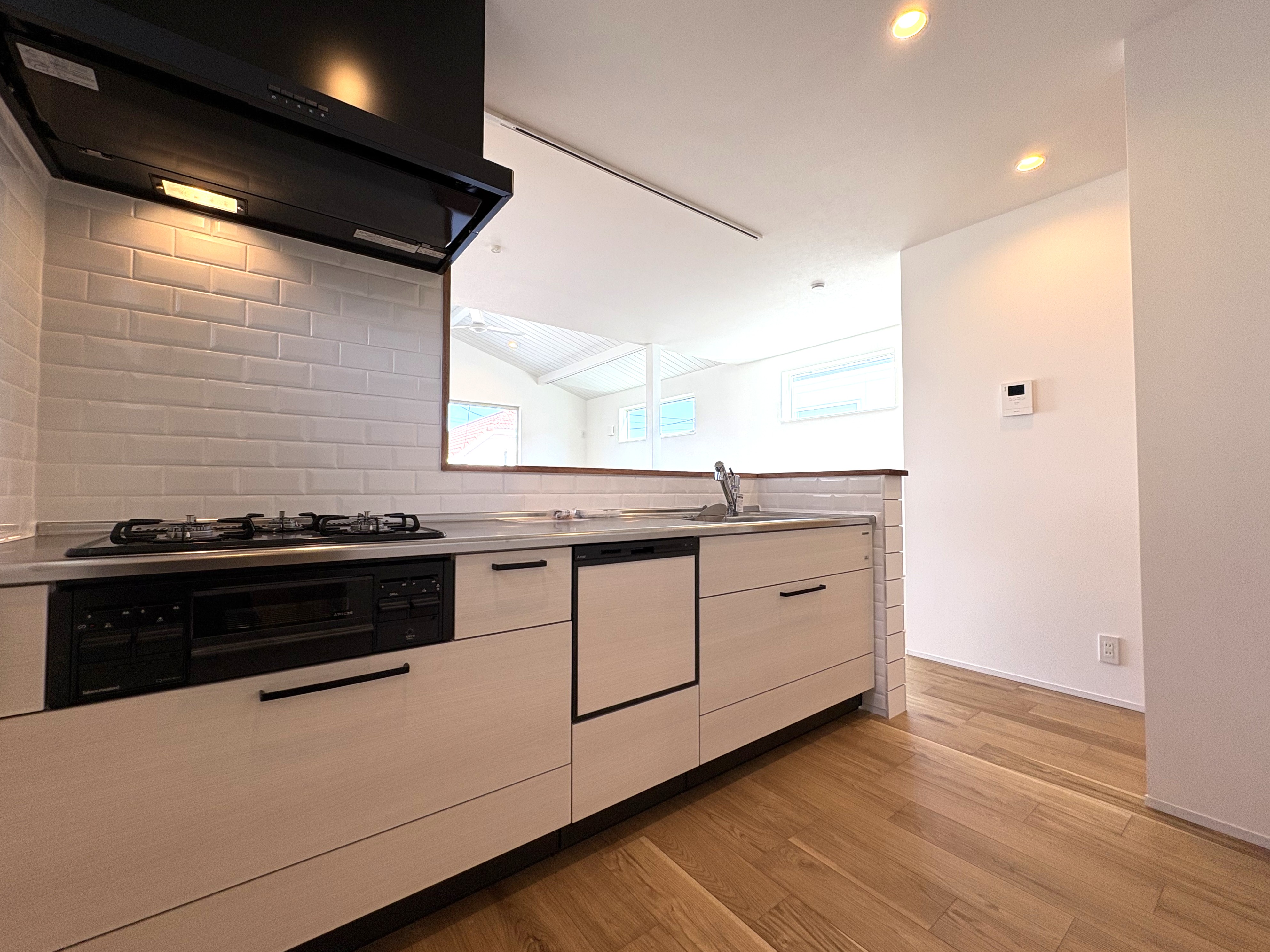 キッチンには空間にアクセントを加える「下がり天井」を施し、