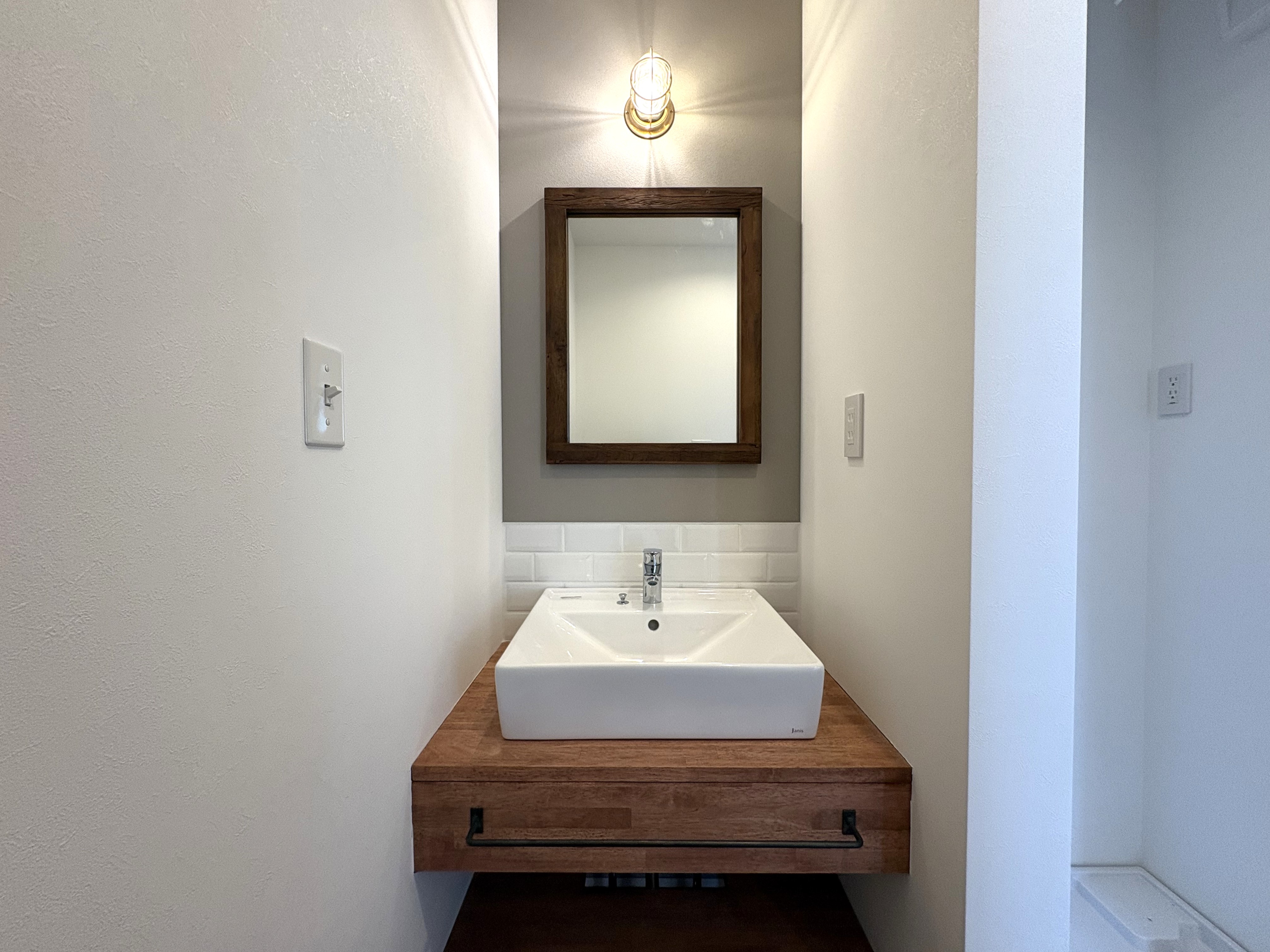 マリンランプやアメリカンスイッチ等、随所にこだわりを感じる住まいとなります。