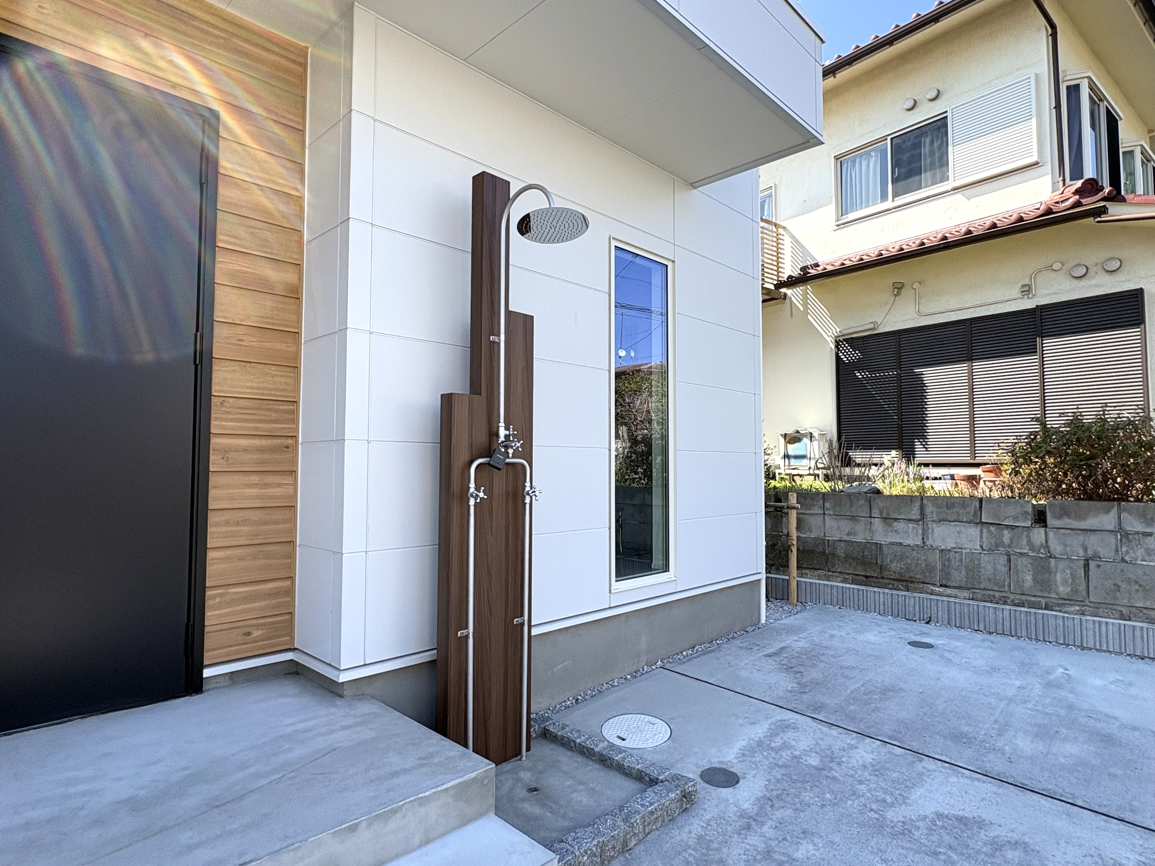 外には、サーフィン帰りに利用できるシャワーまで完備。