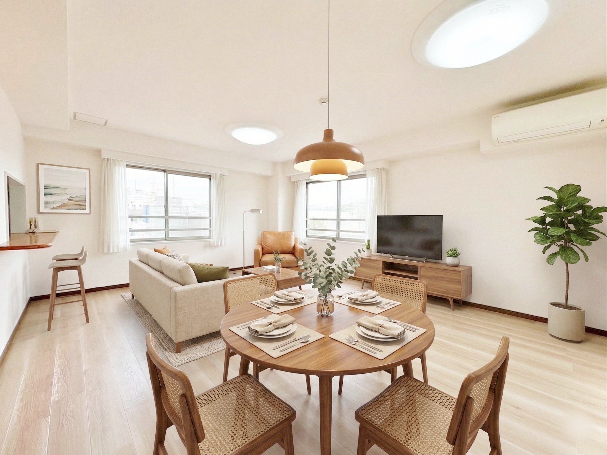 この物件の自慢は、南・西・東の3面に面した広々リビングと1日中の採光です。家の中はいつも明るく、四季折々の自然を身近に感じられます。