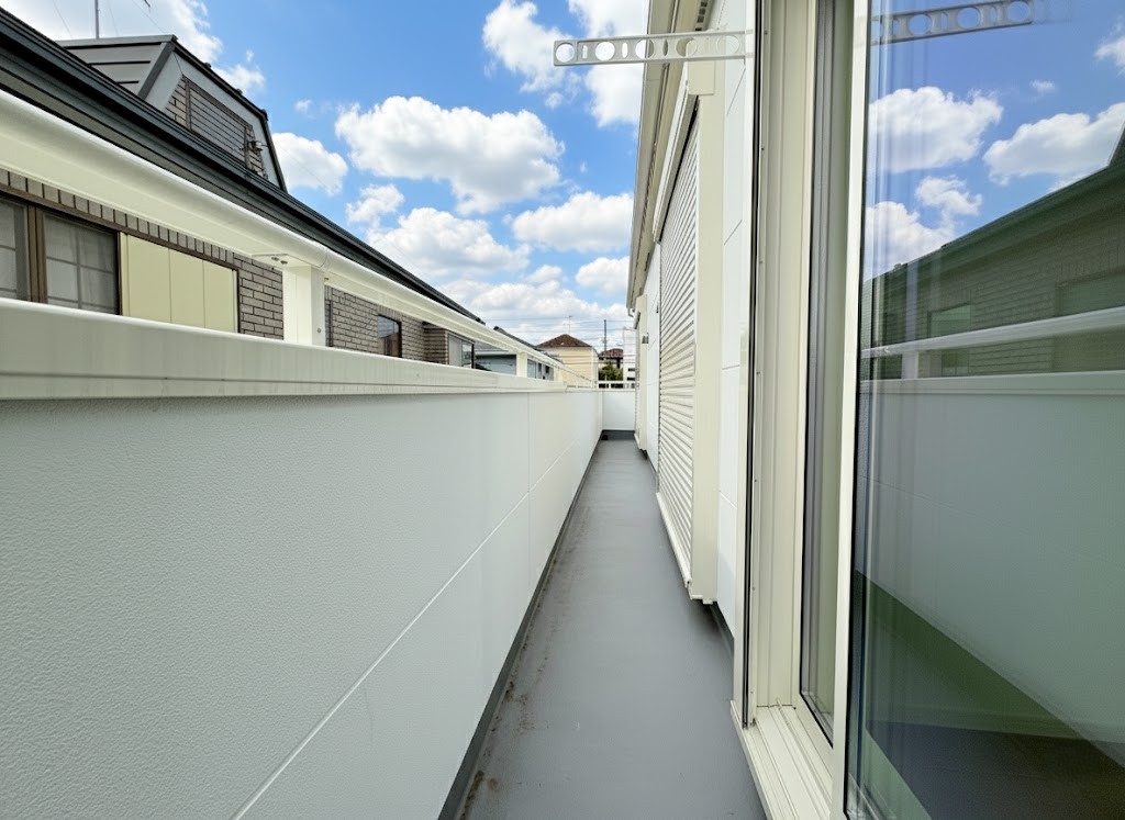 青空がとても映えるホワイトの外観が目を引くシンプルモダンな外観が印象的でした。