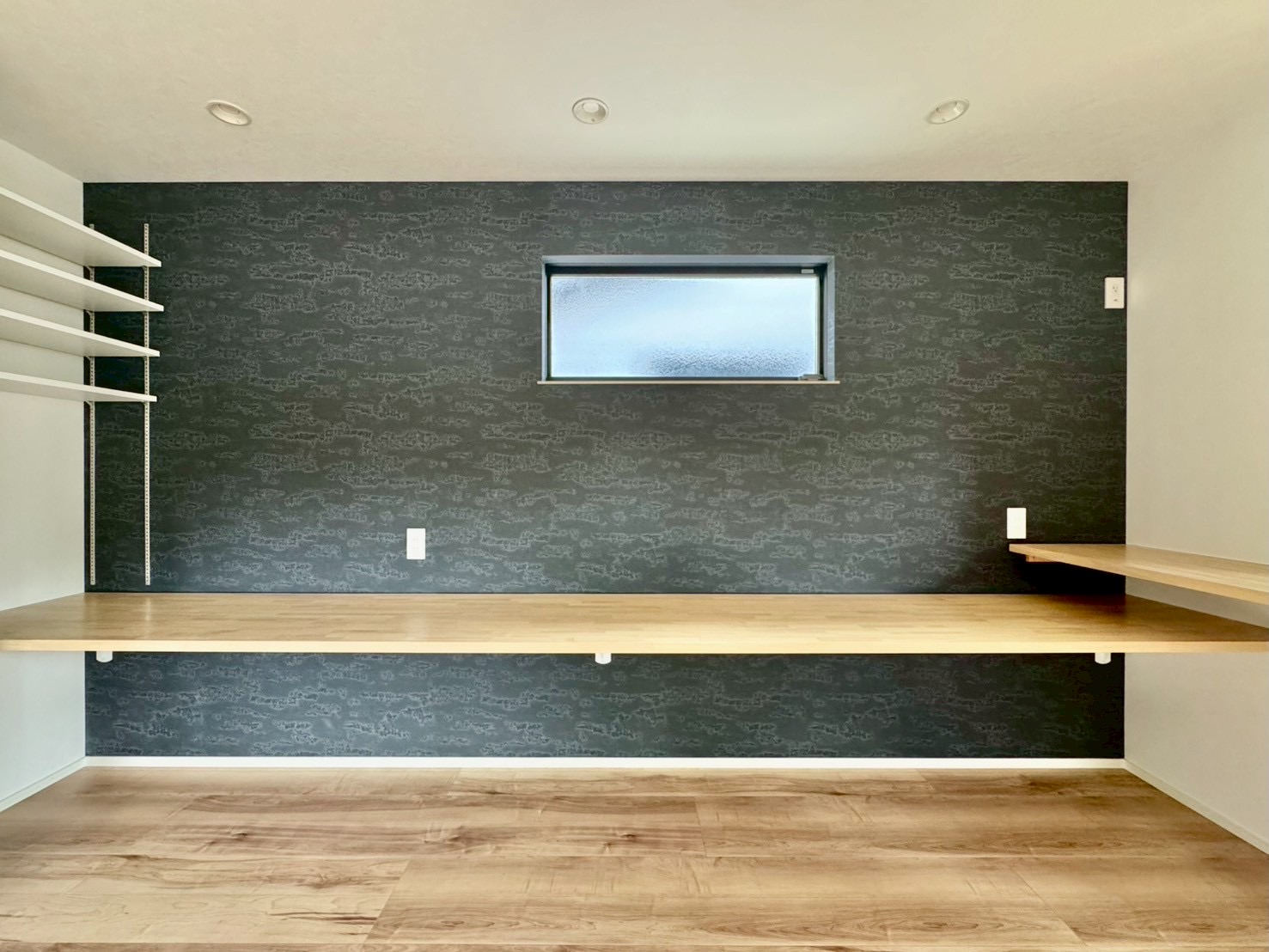 家族が自然と集まる開放的な空間には、リモートワークにも便利なワークスペースが設けられています