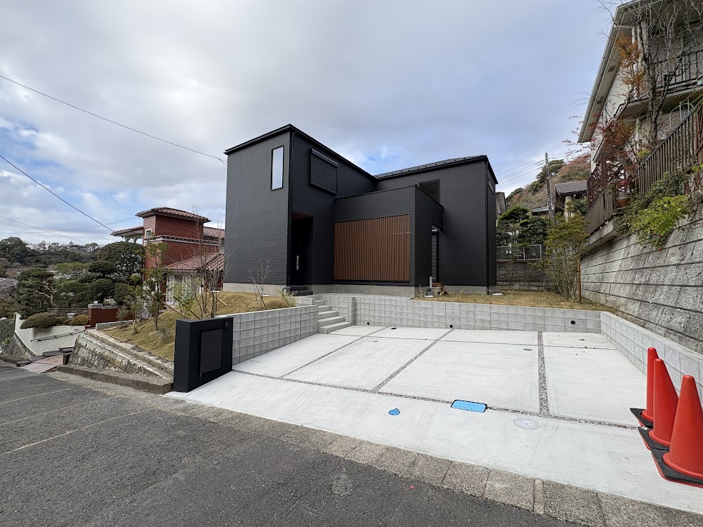 観光地の賑わいから一線を画したこの地に、自然と共生するモダンな新築住宅が誕生しました。