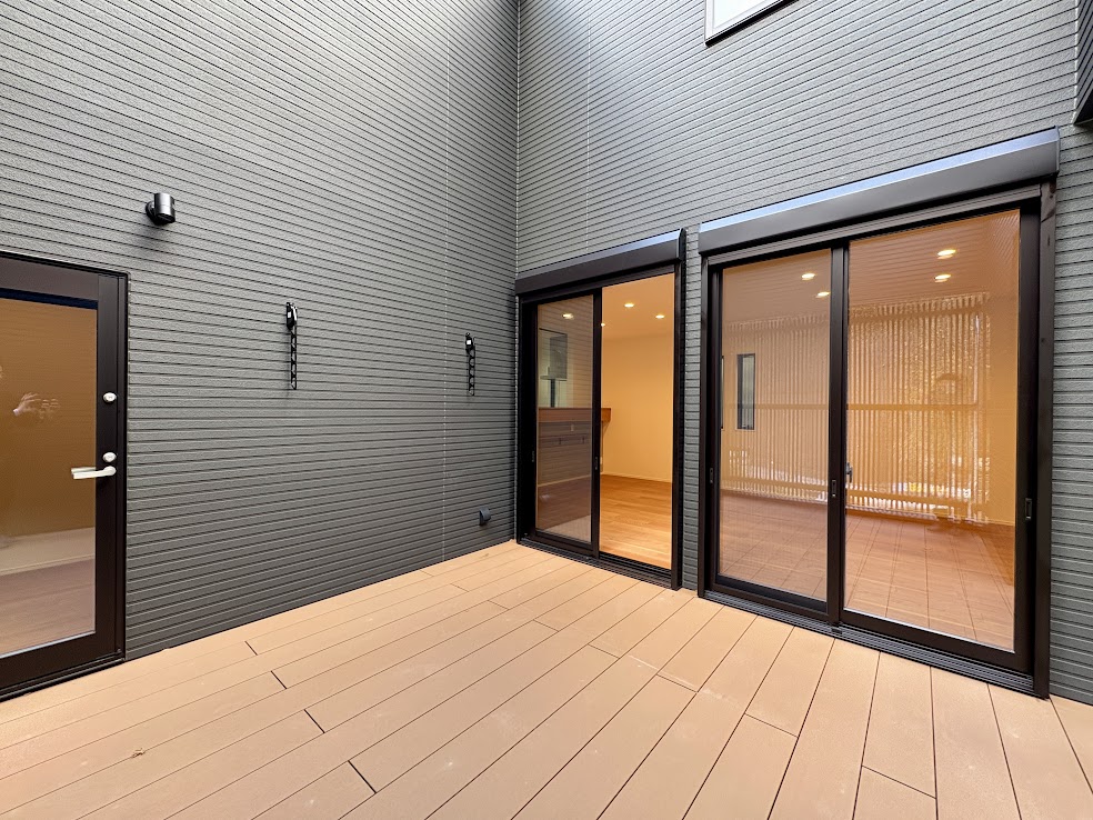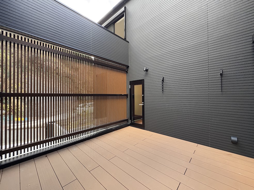 リビングスペースから直接出入りできるウッドデッキは魅力的です。