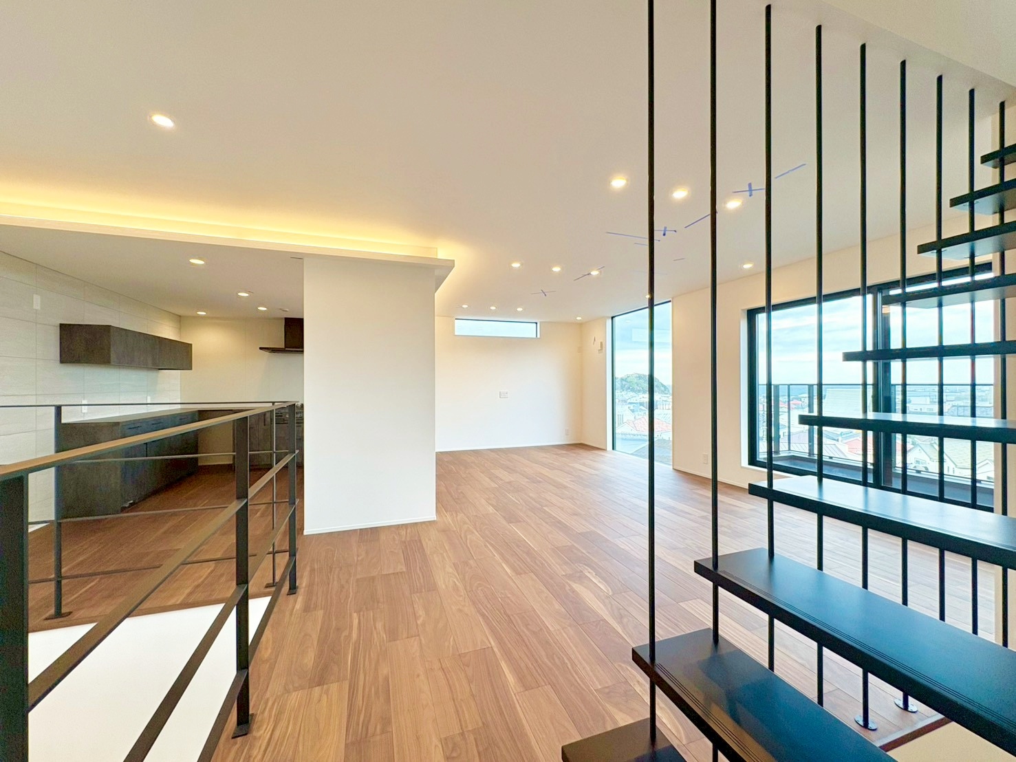 24.7帖のリビングから広がる、海を望む眺望。
