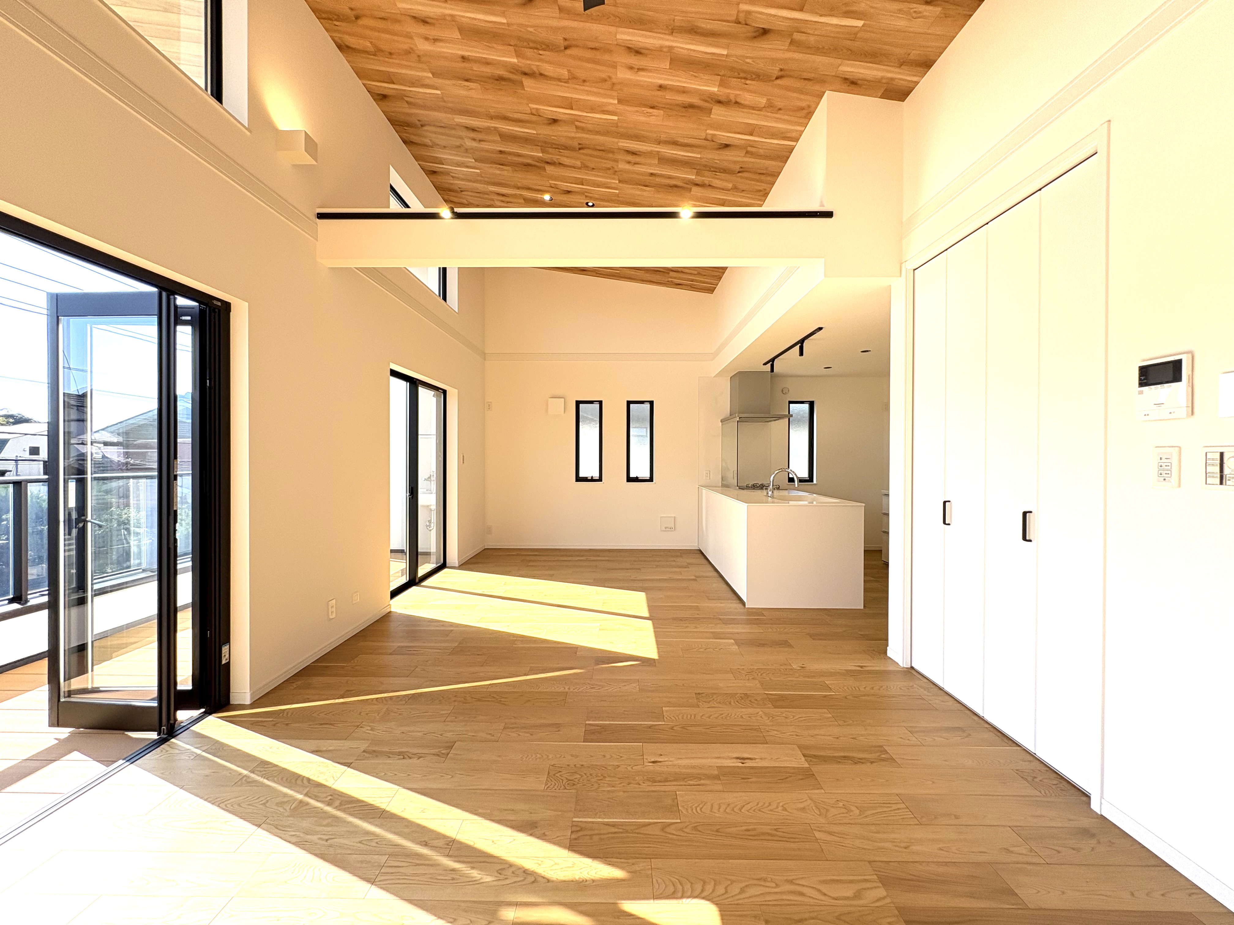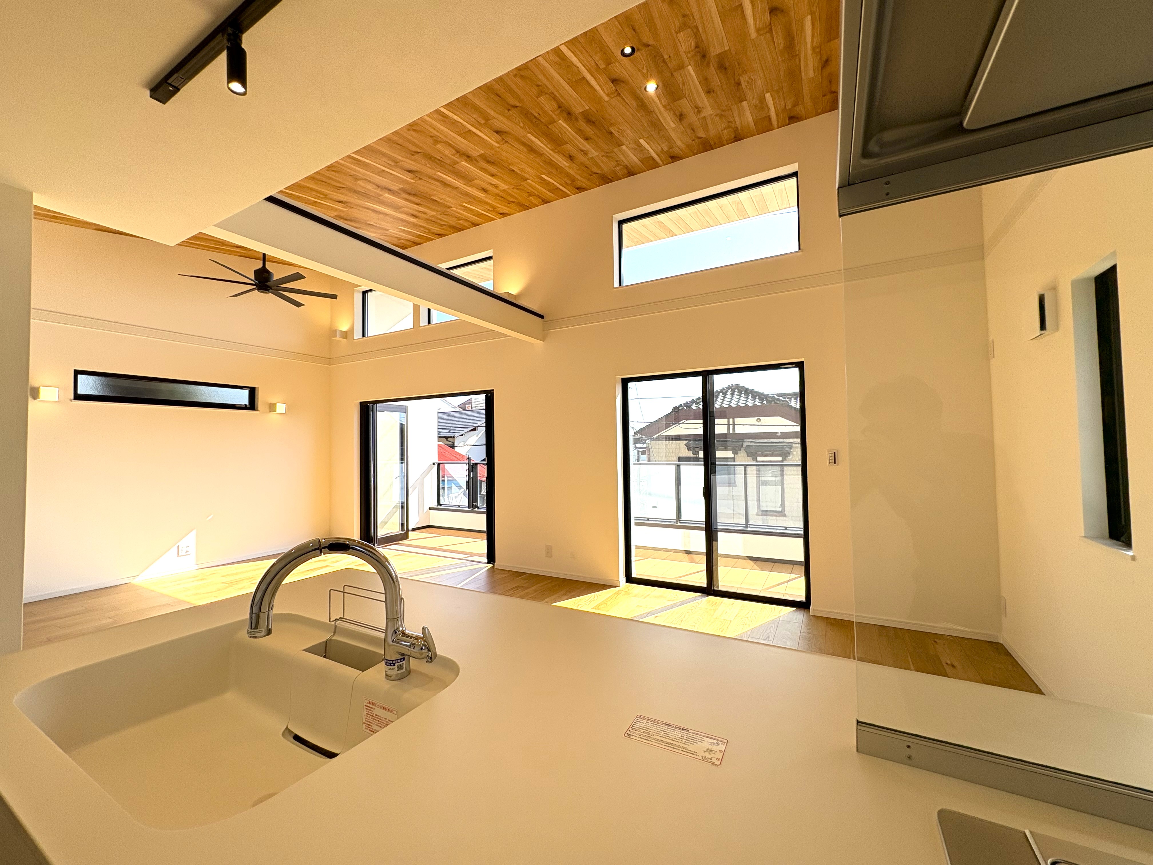 2階に配置されたLDKは、上空に抜けるような勾配天井が最大の魅力。