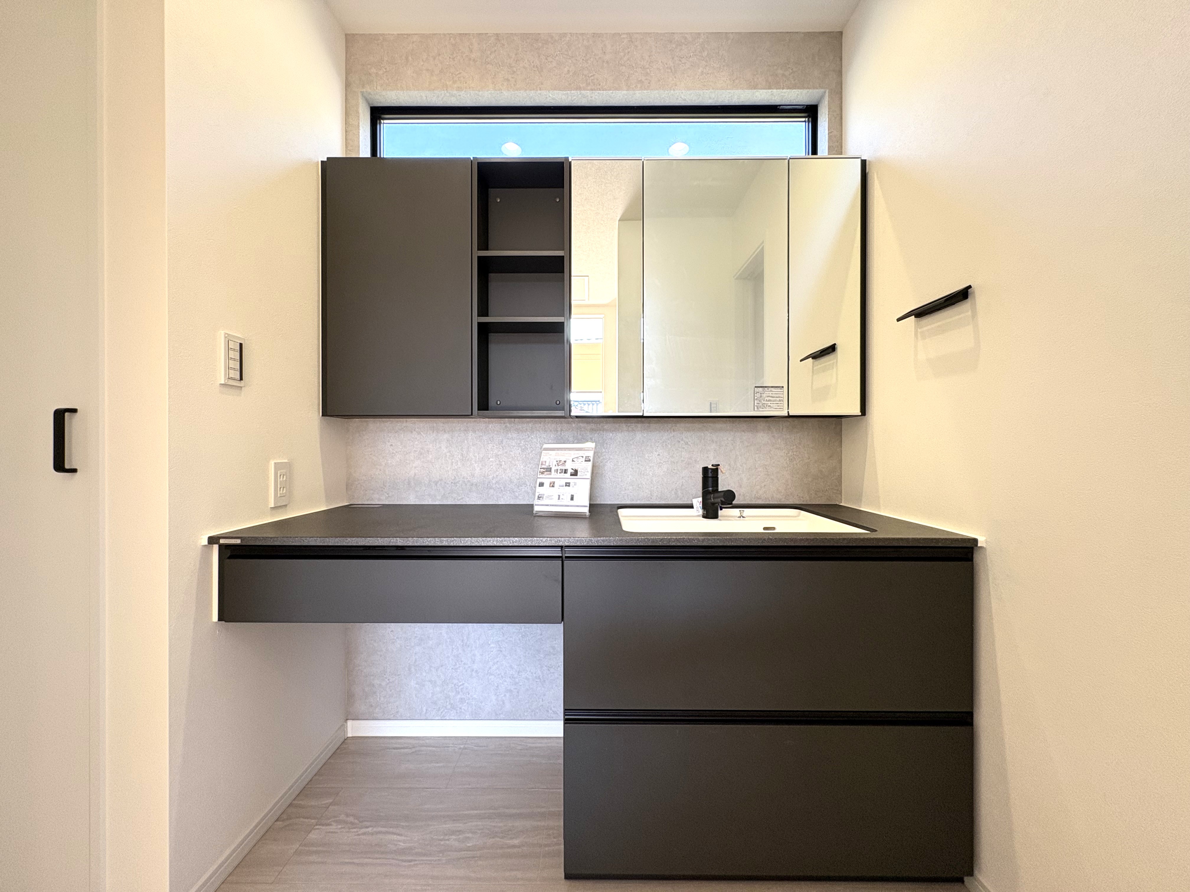 ワイドな1ボウルタイプの洗面台は、忙しい朝や就寝前の時間も二人並んで快適に使用できます。