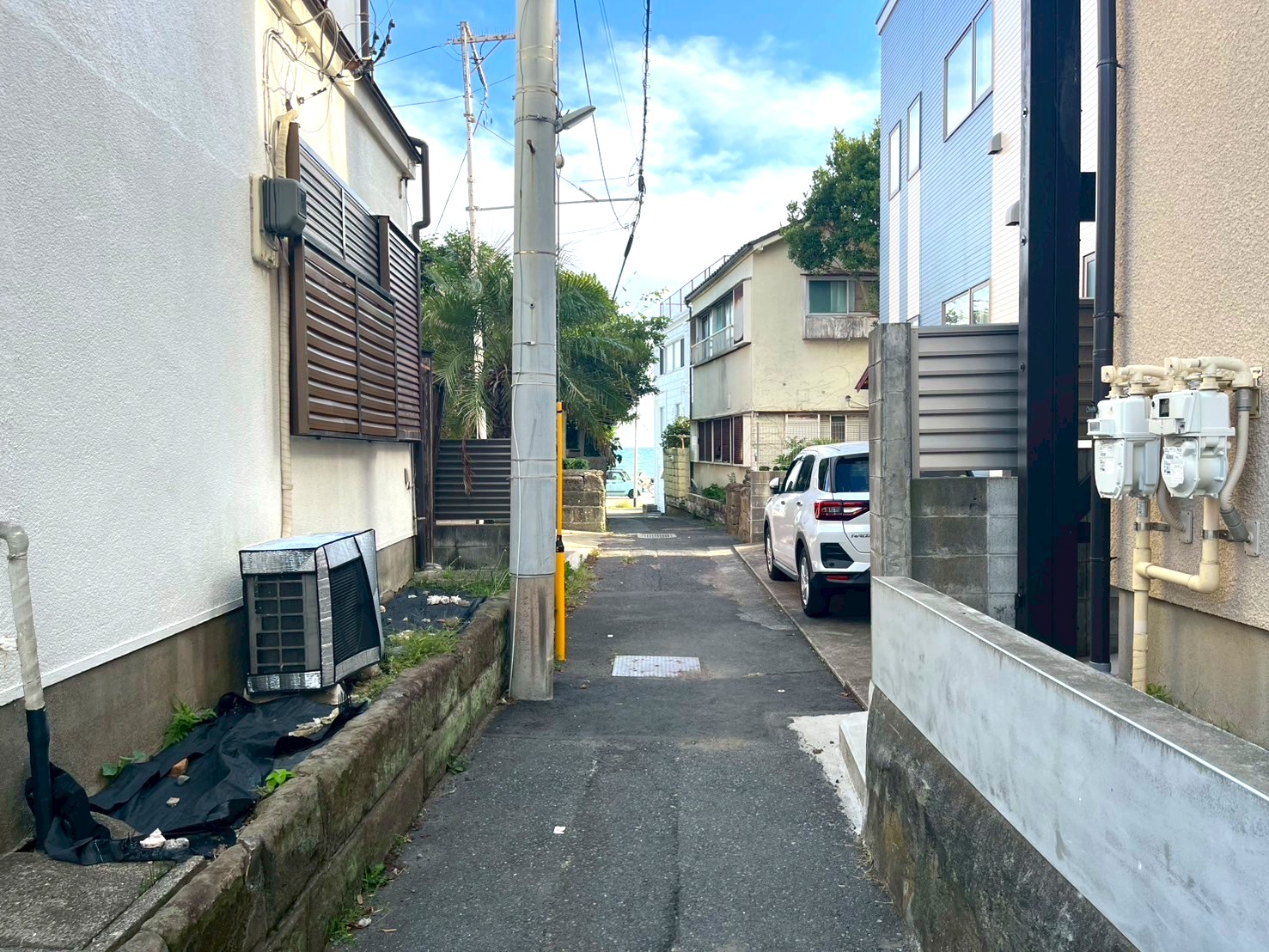 家のすぐそばに続く小道は、海と日常を繋ぐ特別なアプローチ。