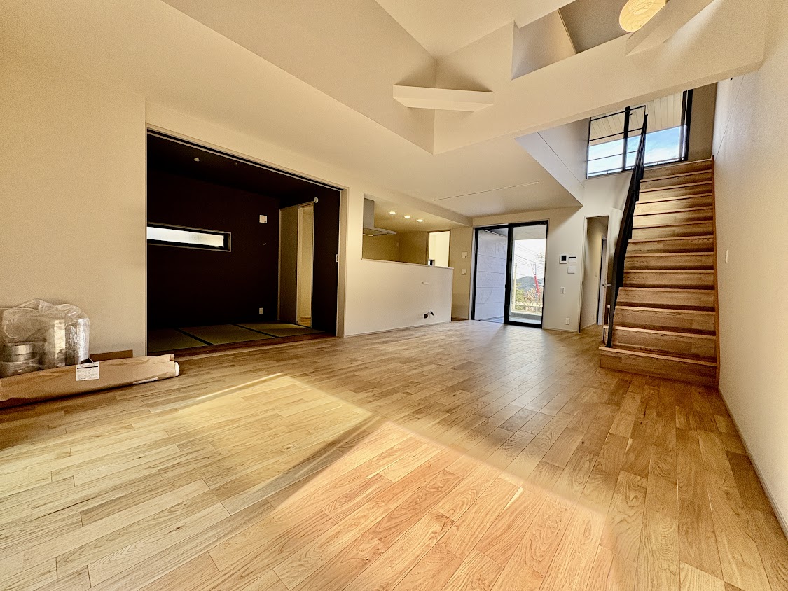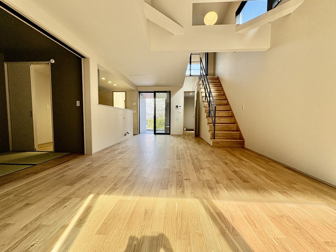 約21帖の広々としたLDKに足を踏み入れれば、吹き抜けから降り注ぐ光の粒子が、家族の笑顔を優しく照らし出すでしょう。南側の庭で季節の移ろいを愛で、夜にはインナーバルコニーで月を眺めながら、大切な人と静かにグラスを傾ける……。