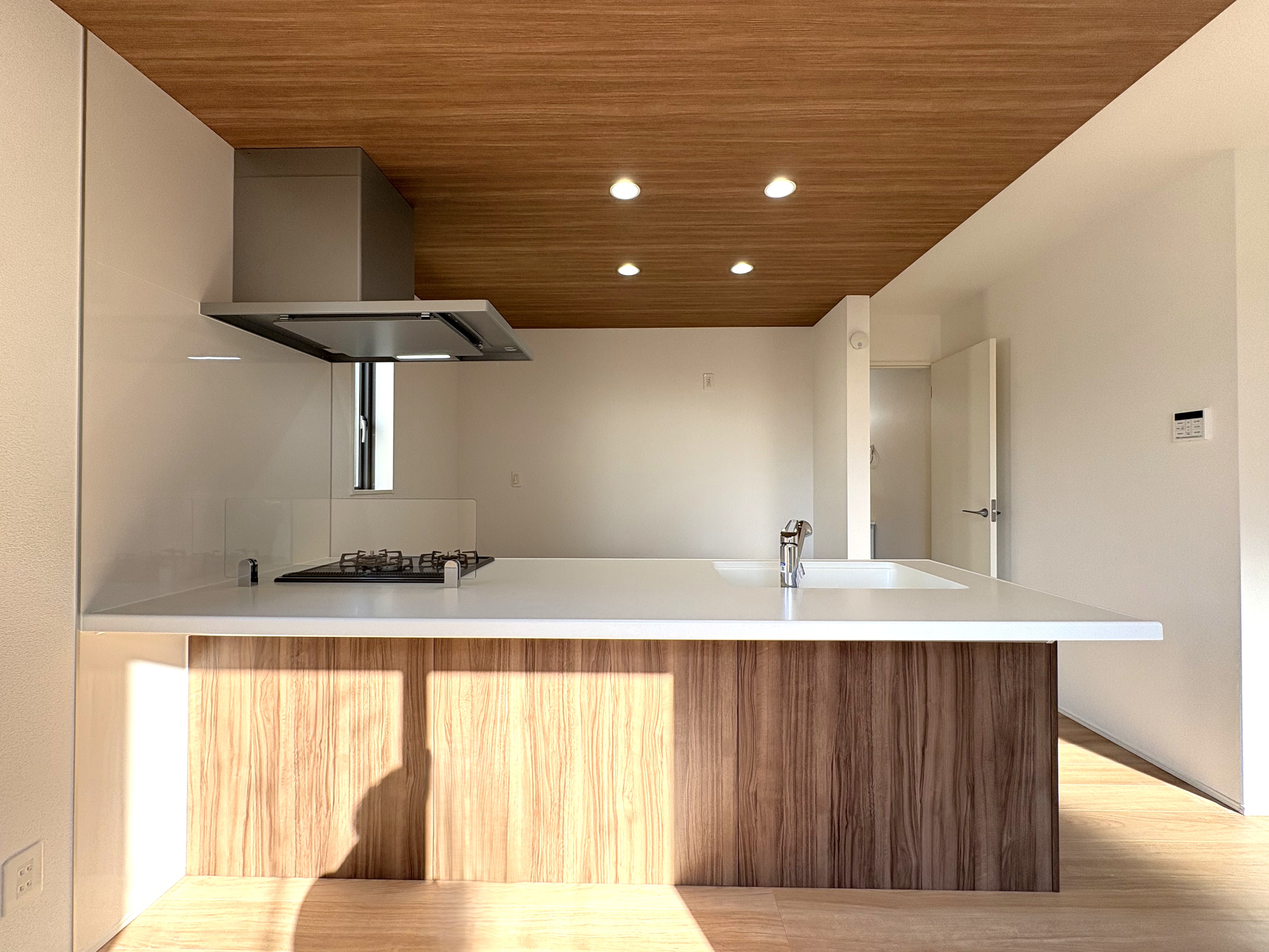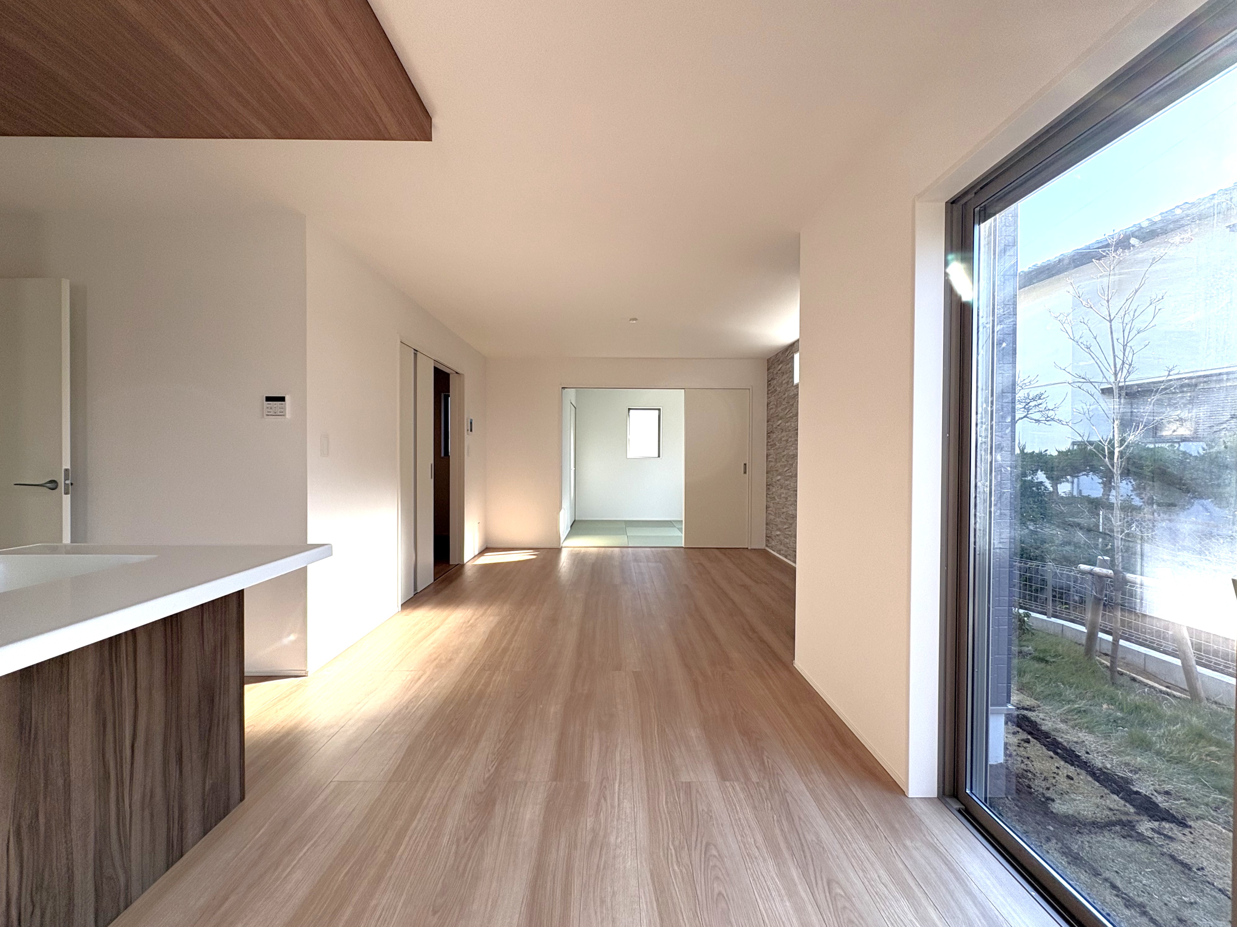 明るい木目を基調とした開放感のあるLDKは、日当たり良好な立地も相まって、心地よい陽光が入ります。