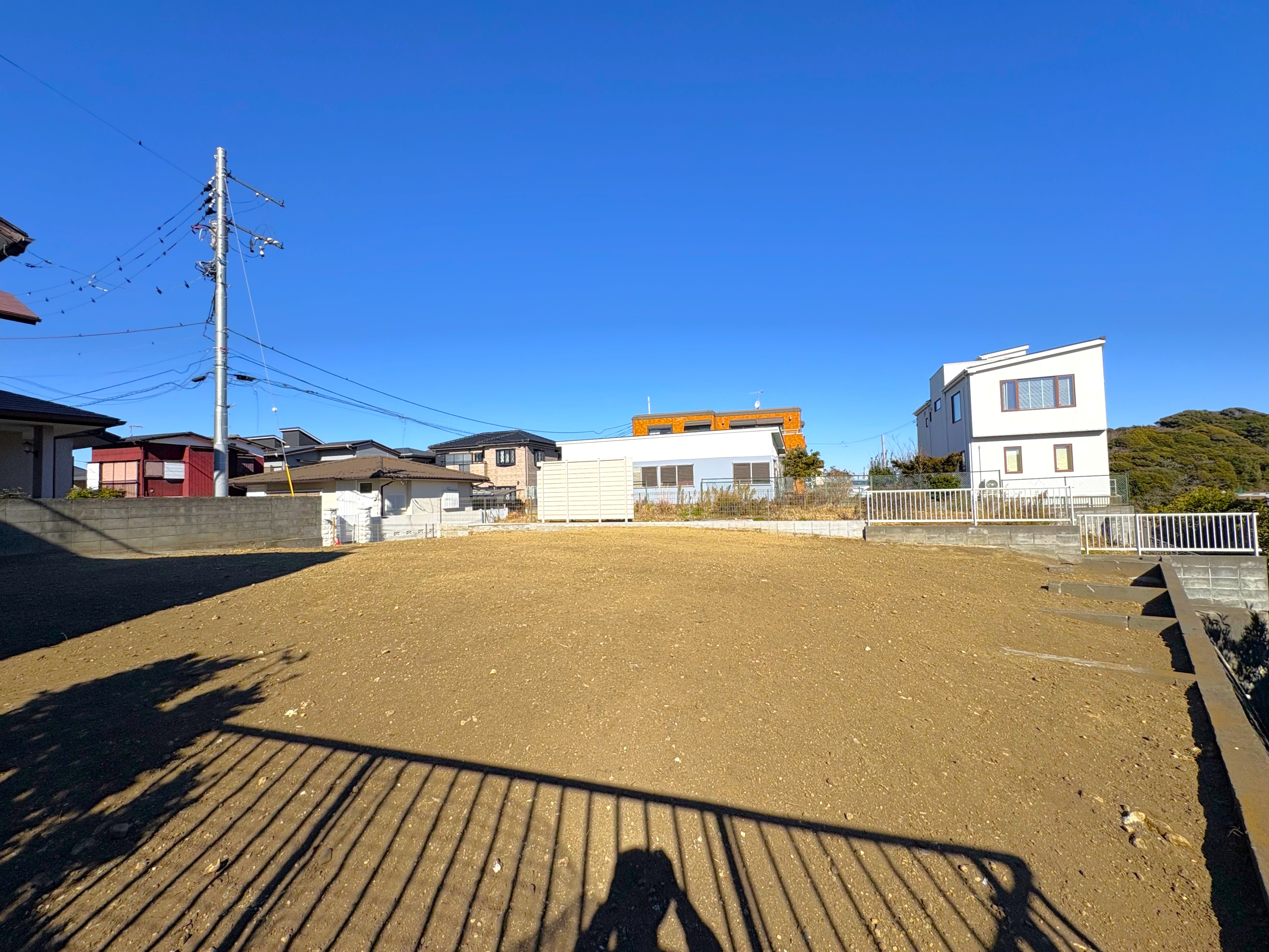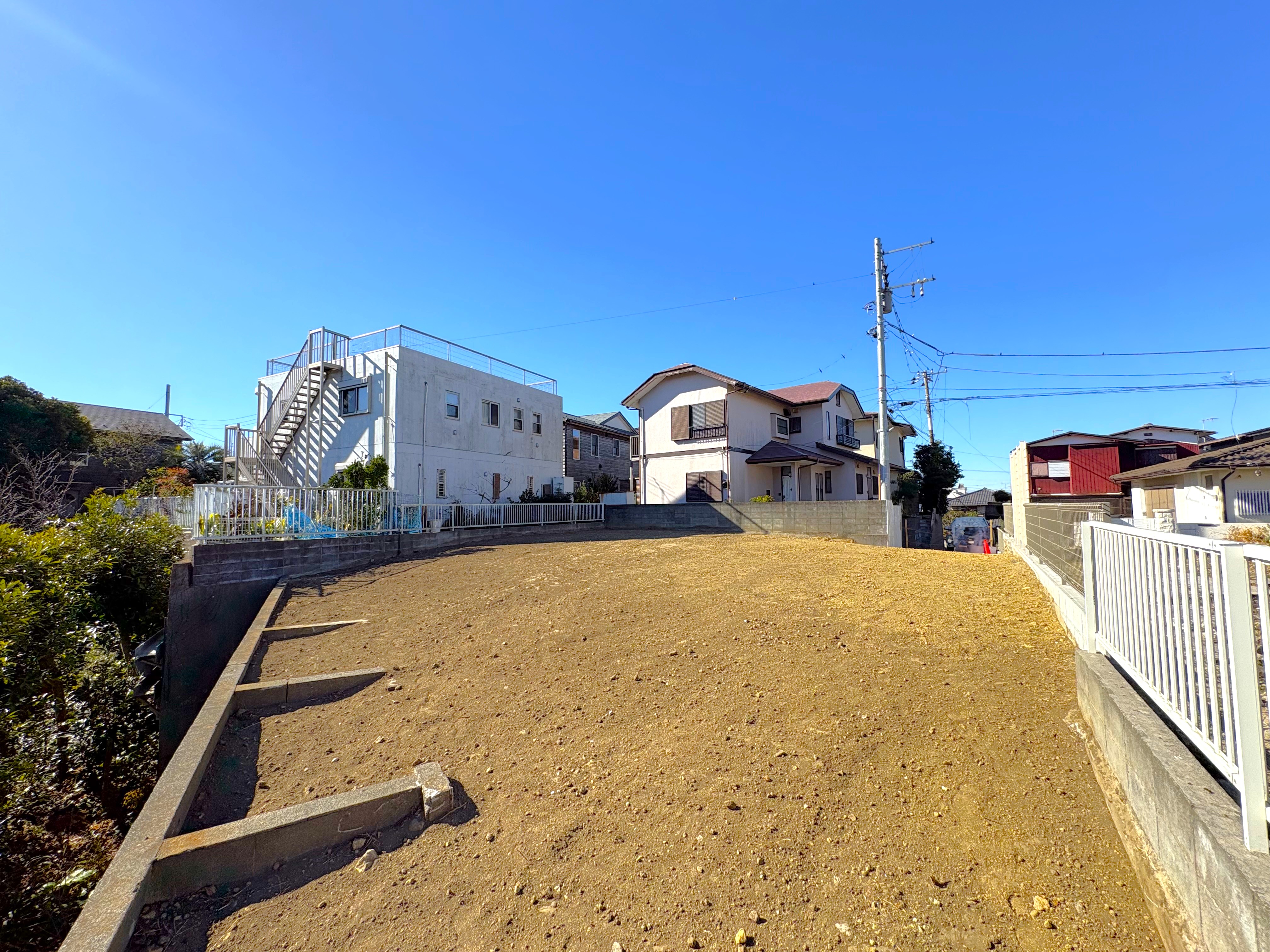 穏やかな空気が流れる高台の一画です。敷地面積は約255.39㎡(約77.25坪)。