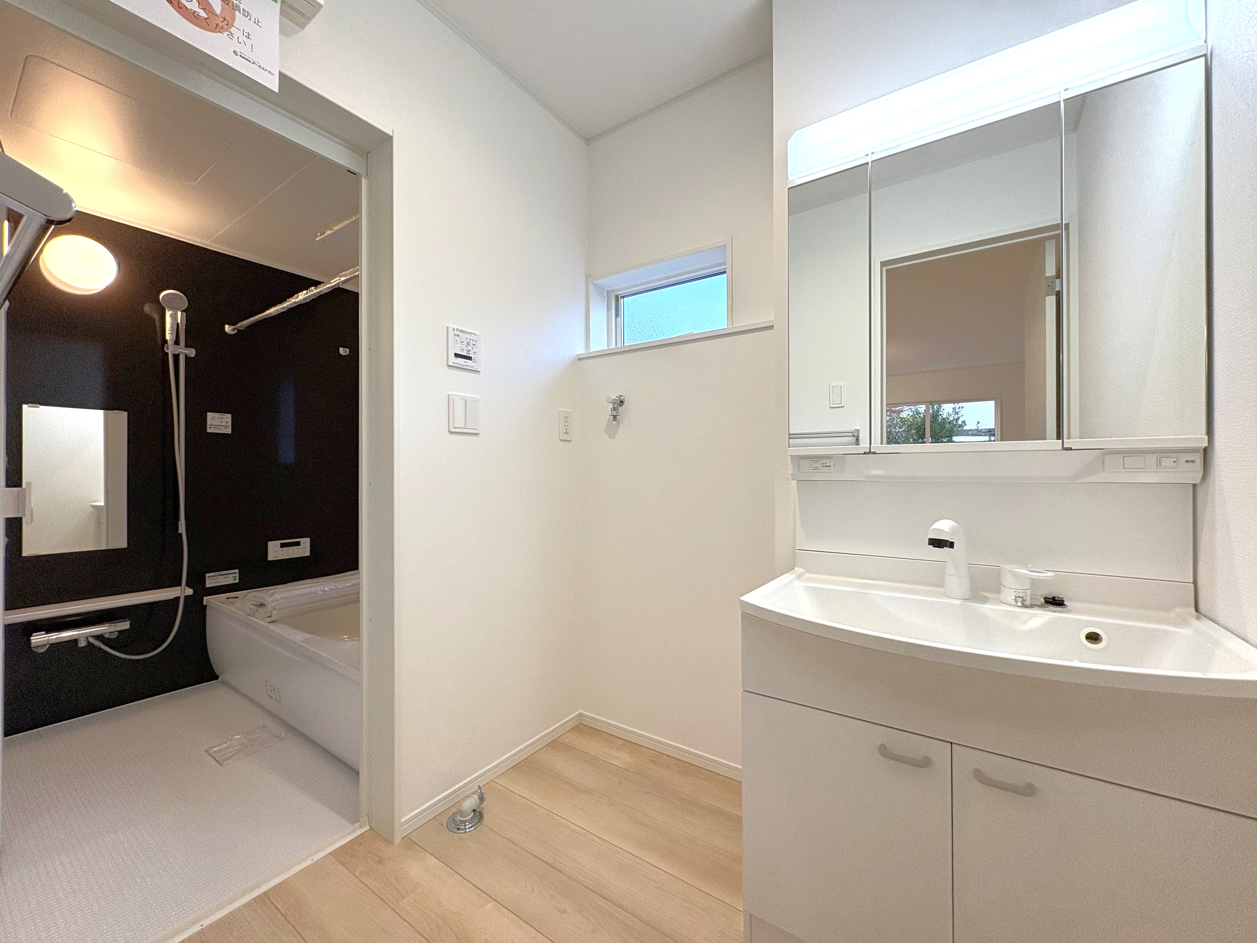 水廻りは浴室乾燥機付きのバスルームや、使い勝手の良い三面鏡のあるパウダールームなど、