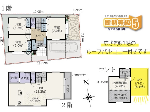 間取りは、3LDK+ロフト+ルーフバルコニー。