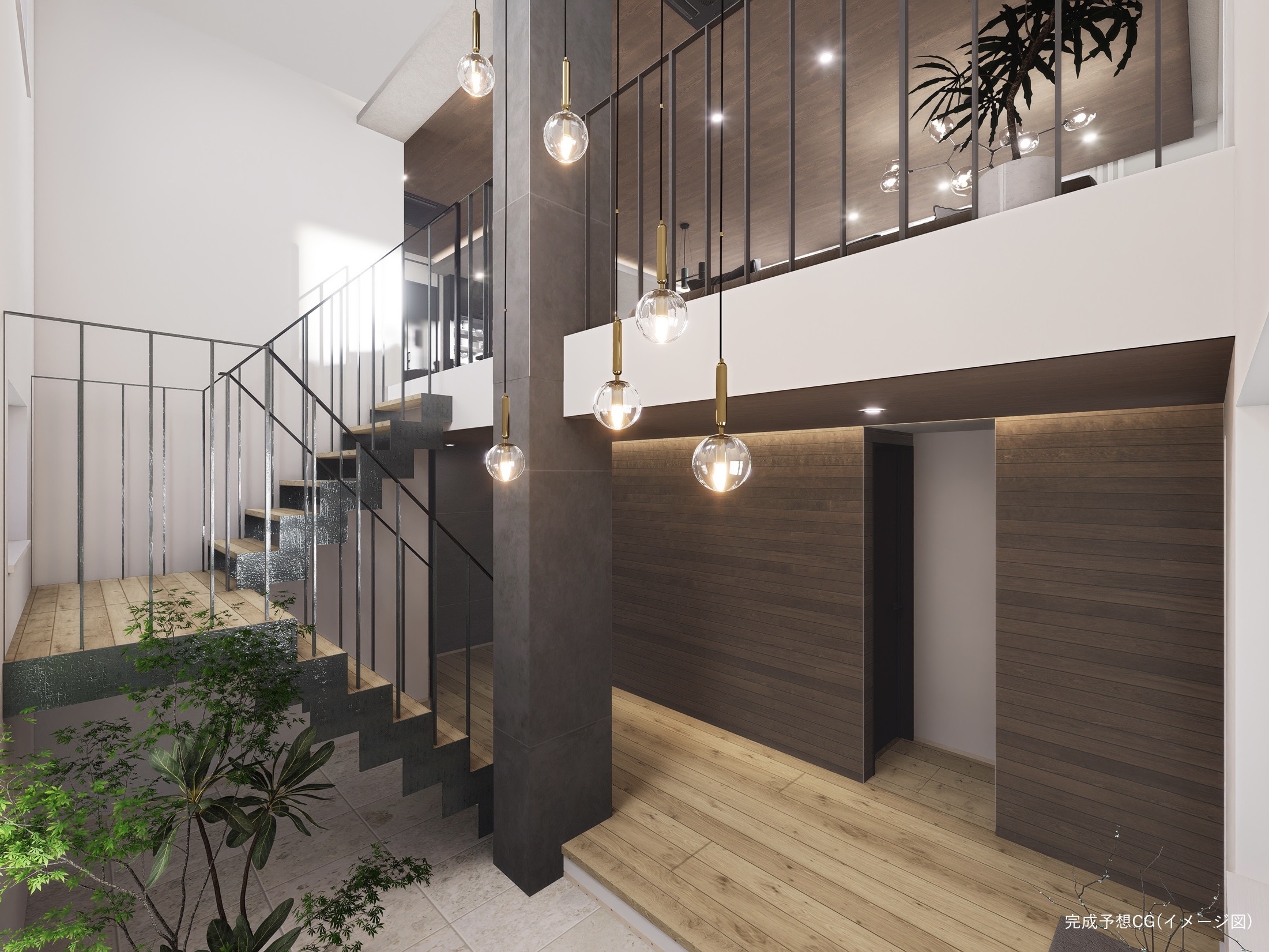 吹き抜けで重厚感のある玄関。