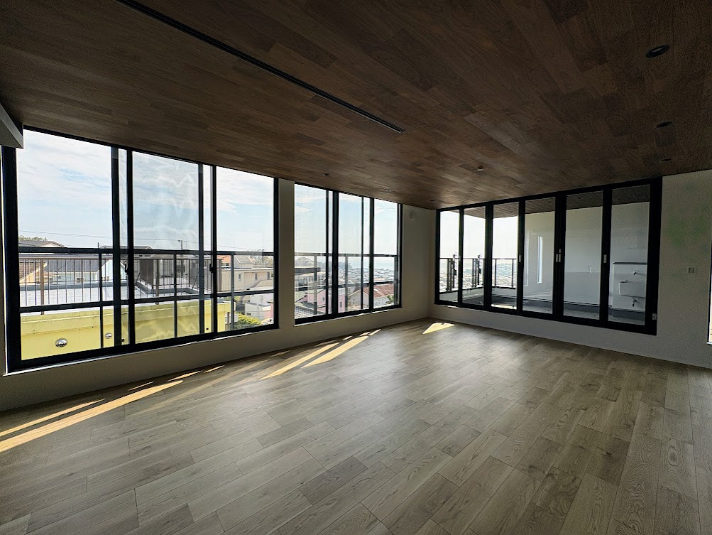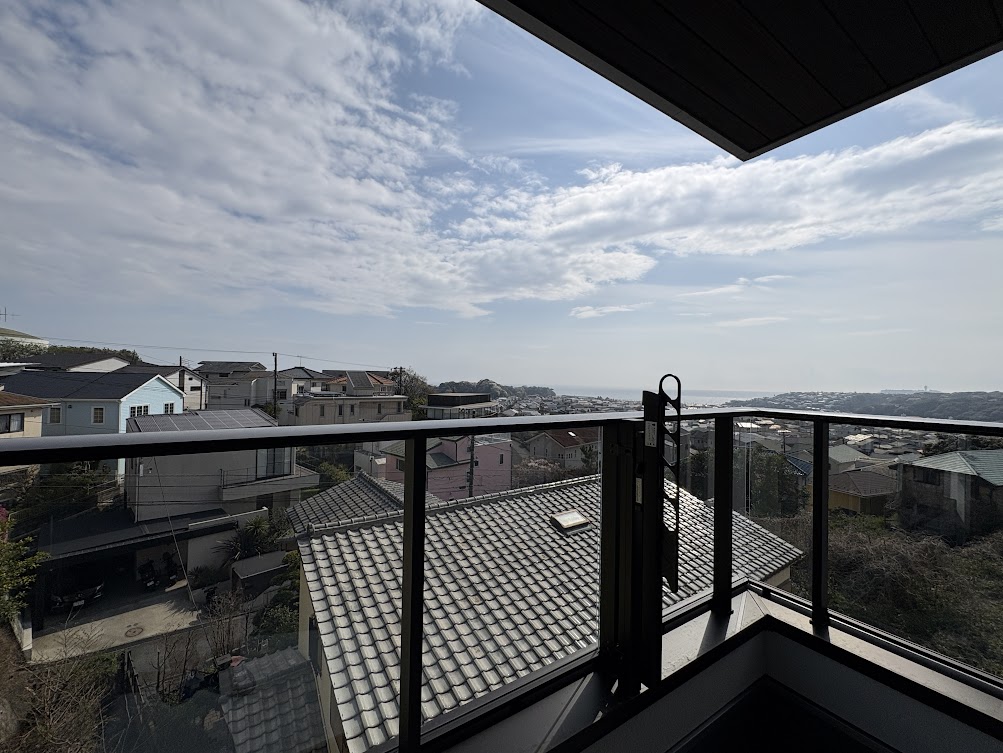 高台という立地を活かした設計により、大きな窓からは相模湾を望む景色が広がります。