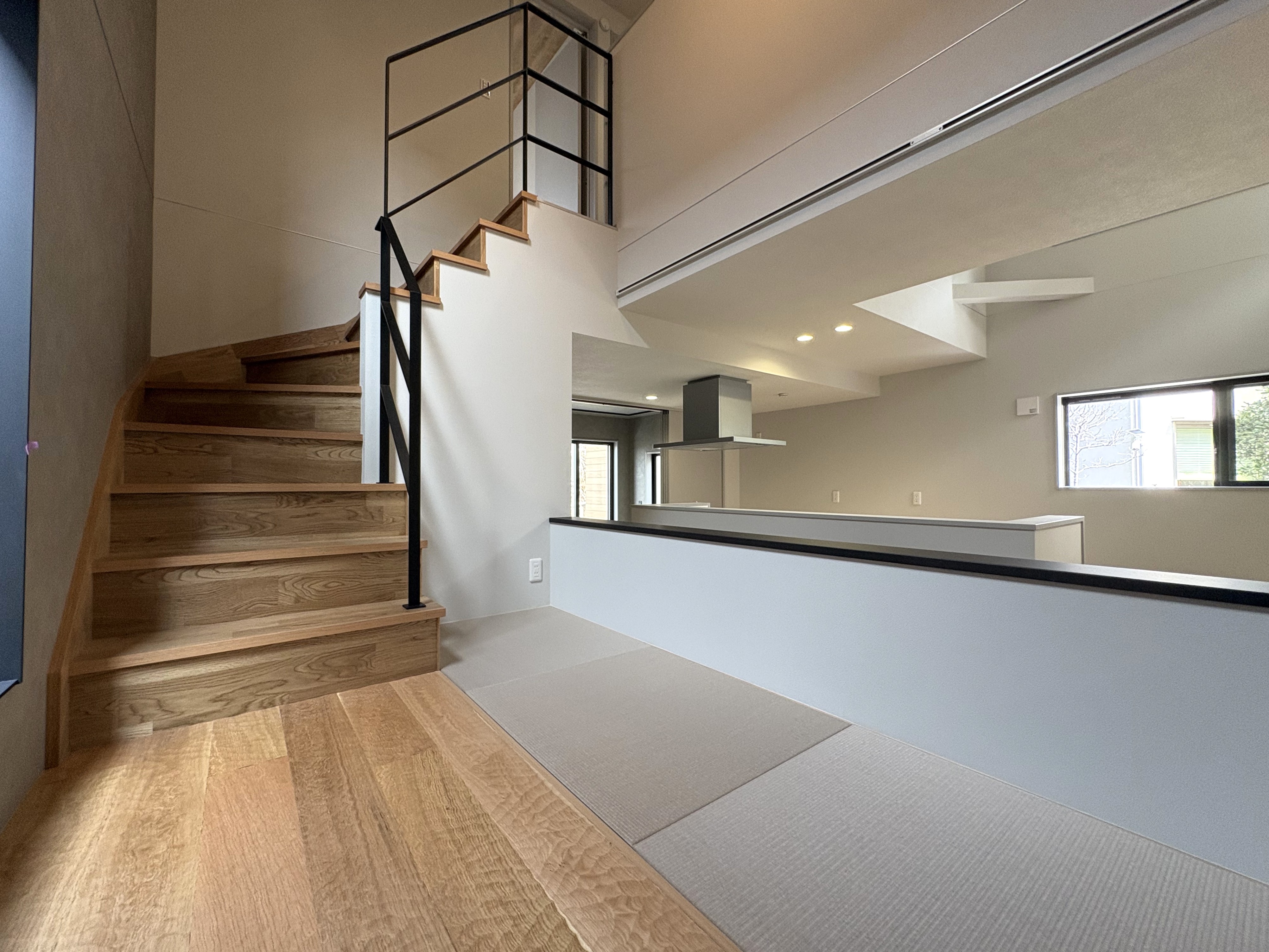 上階からの光が降り注ぐ、明るく開放的な団らんの場を演出します。