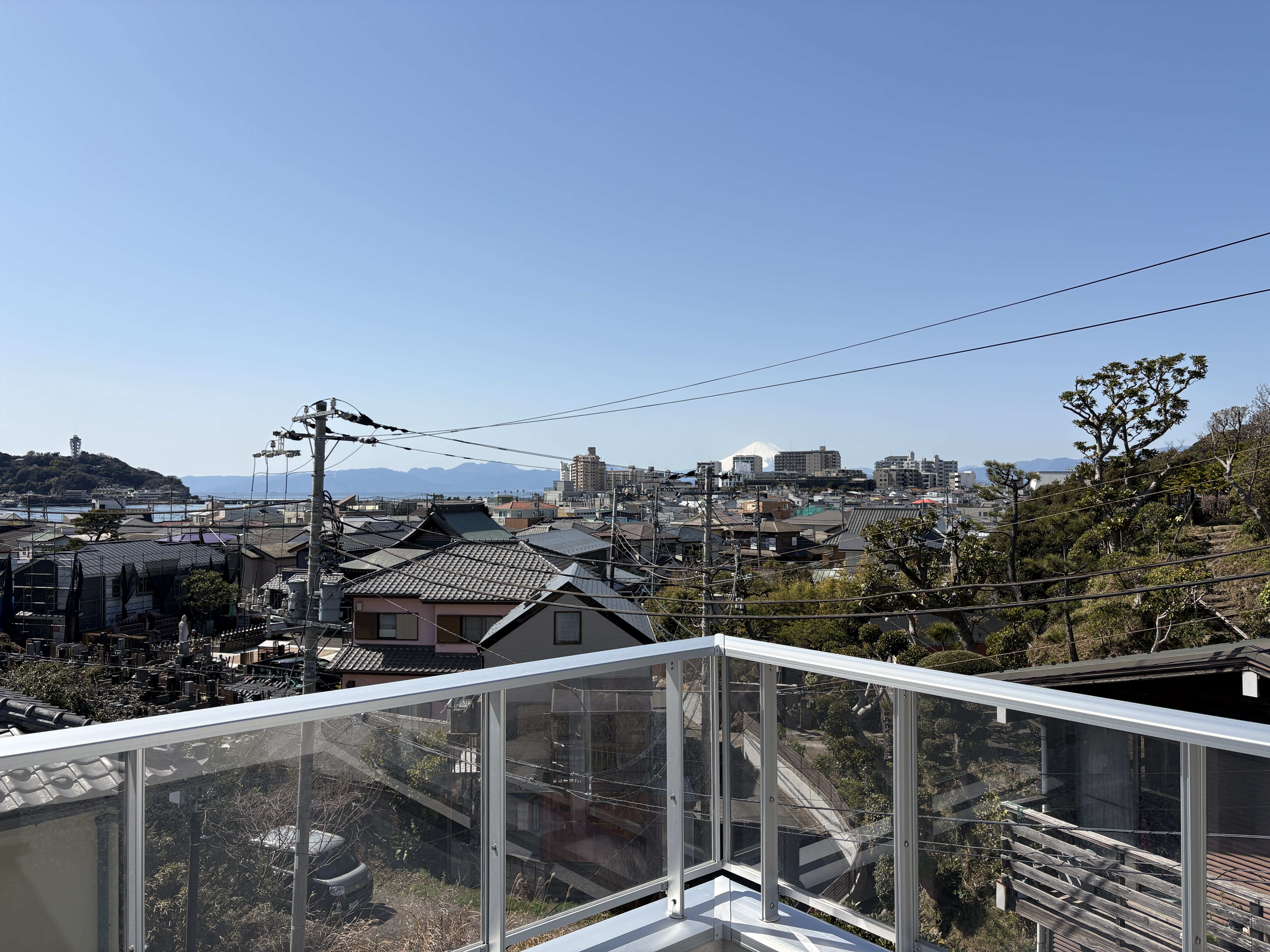 約7.1帖の広々としたルーフバルコニーからは、相模湾の青い海、雄大な富士山、そして江の島のシルエットを一望でき、日常の中に非日常の景色が溶け込みます。