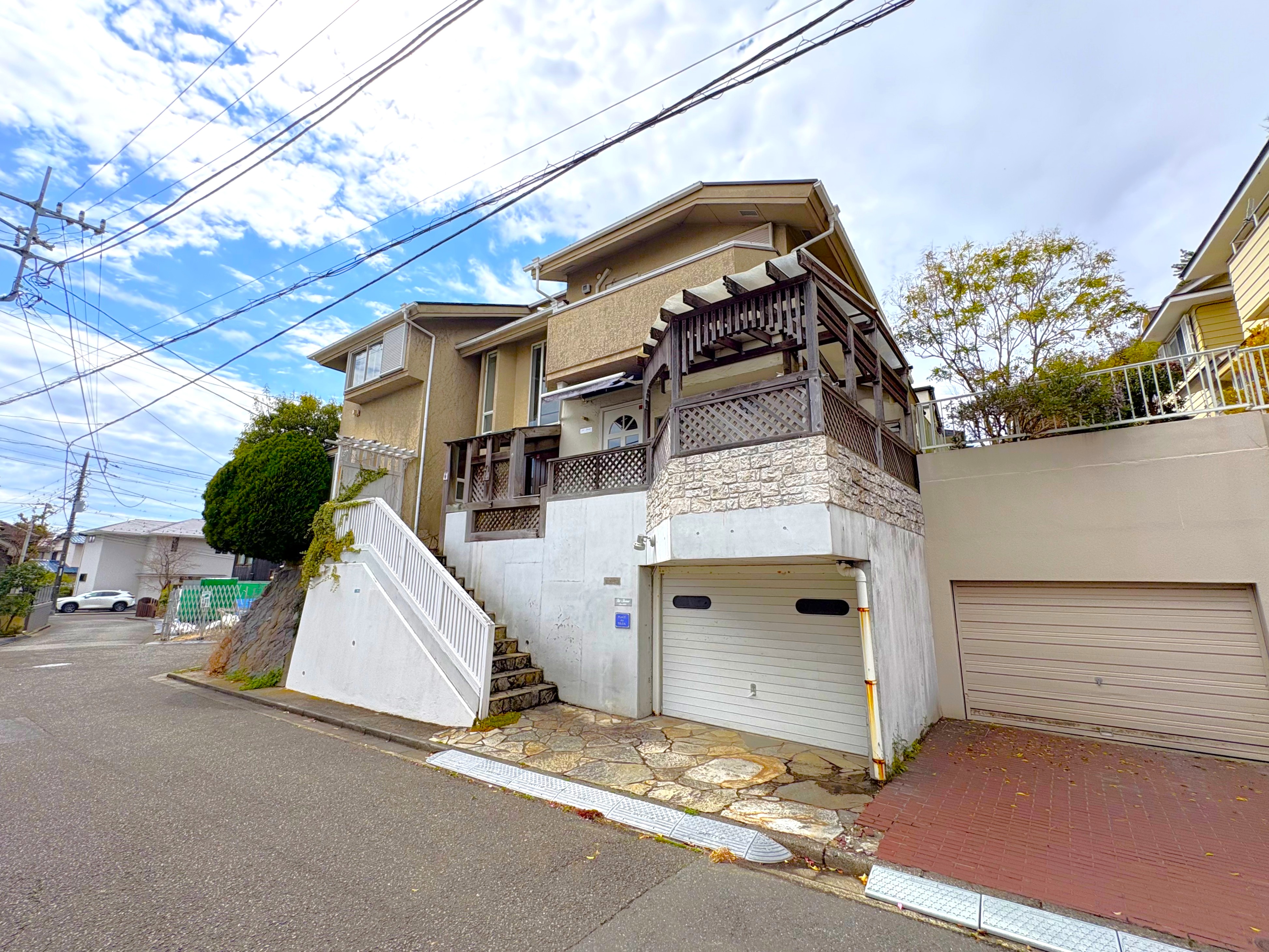 道路幅員約5mの角地という開放感に加え、シャッター付き車庫も完備。