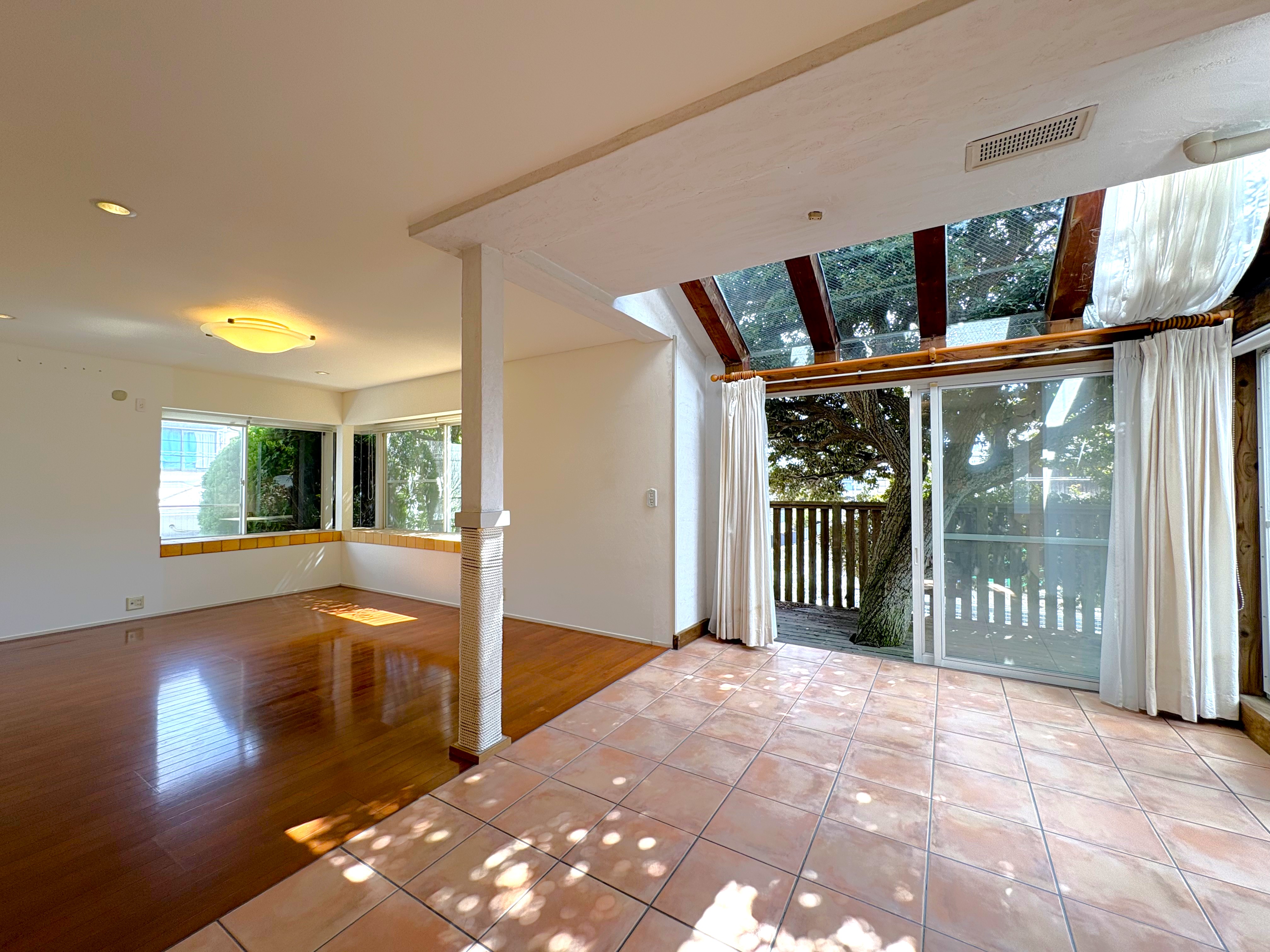 ウッドデッキテラスへと繋がるこの空間は、アトリエや書斎としてはもちろん、小規模なカフェなどの店舗利用としてもご検討いただけます。