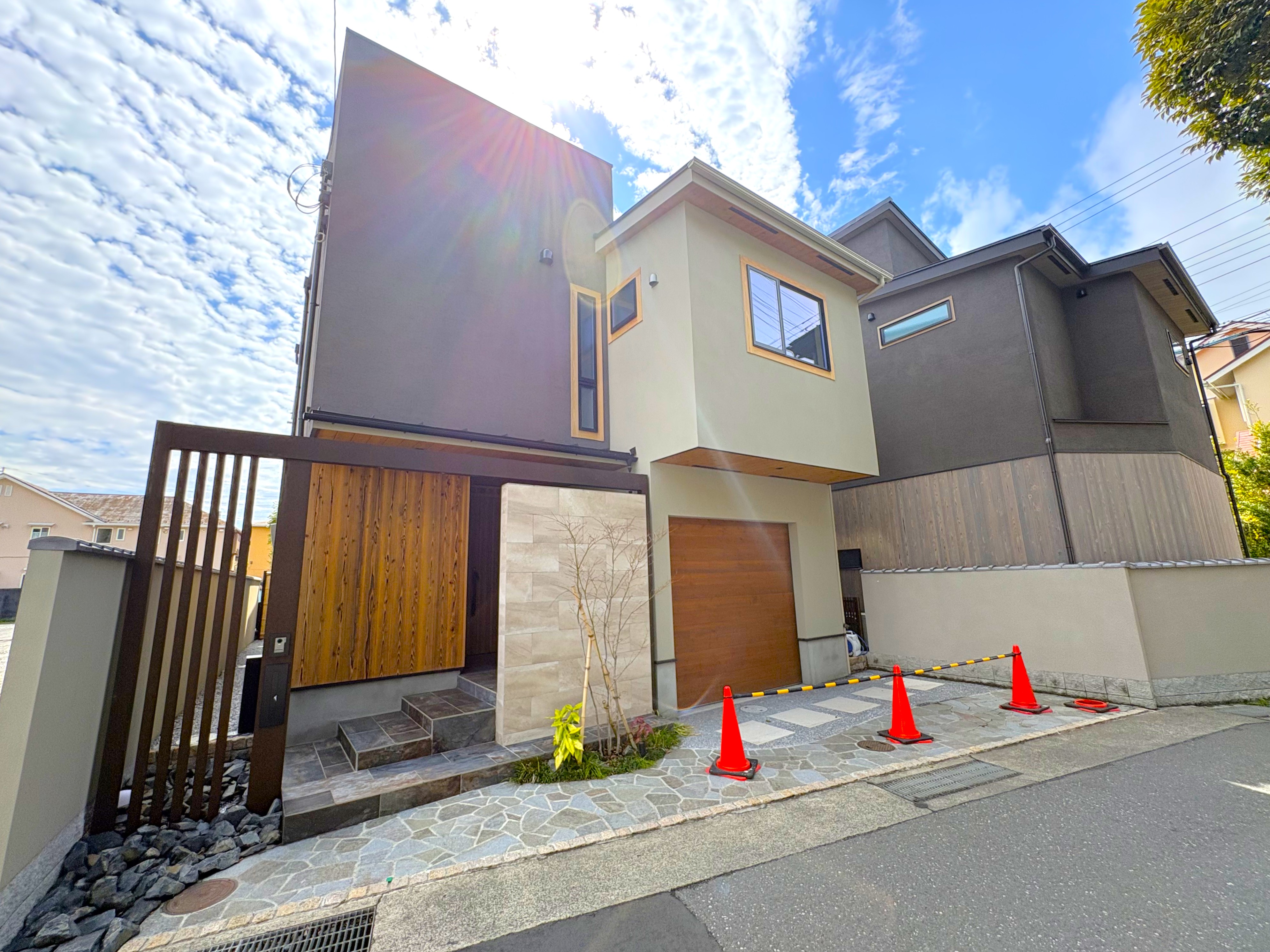 建物は、日本の伝統美と現代的な機能性が融合した「和モダン」のデザイン。