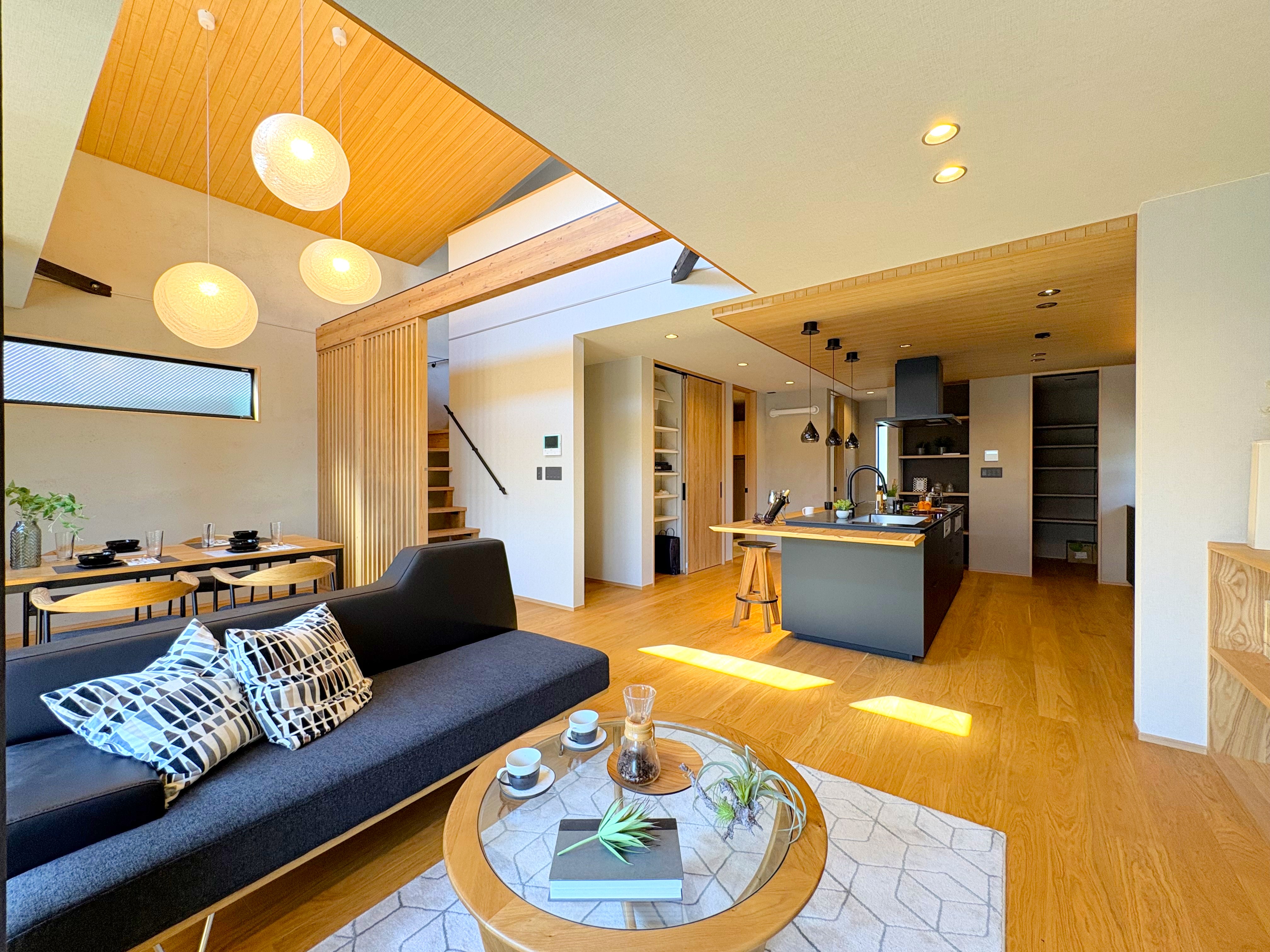 メインとなるLDKは約30帖の広さ、大きな吹抜け天井が圧倒的な開放感を演出します。