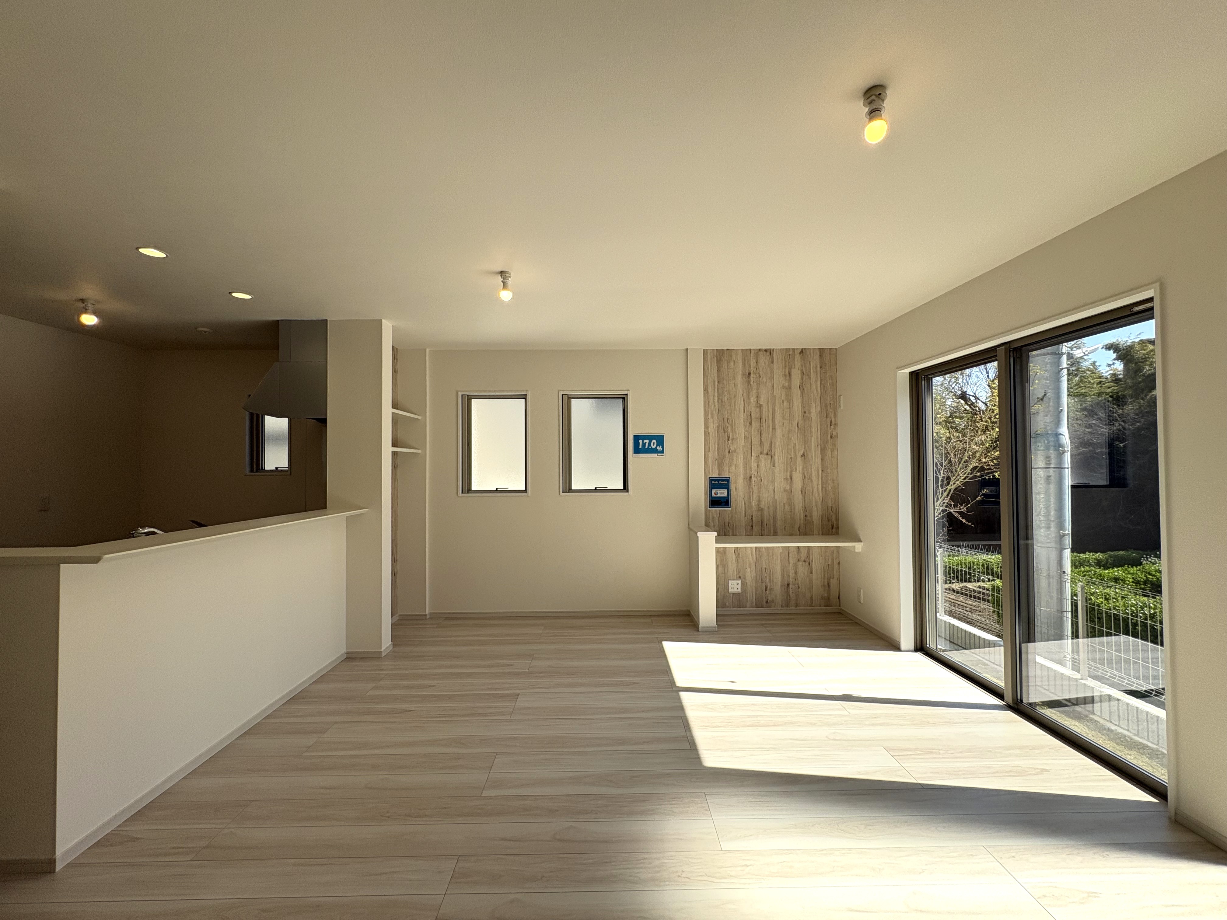 1階に配された広々17帖のLDKには、柔らかな自然光が差し込み、家族が集う中心の場となります。