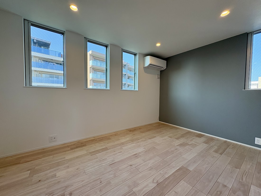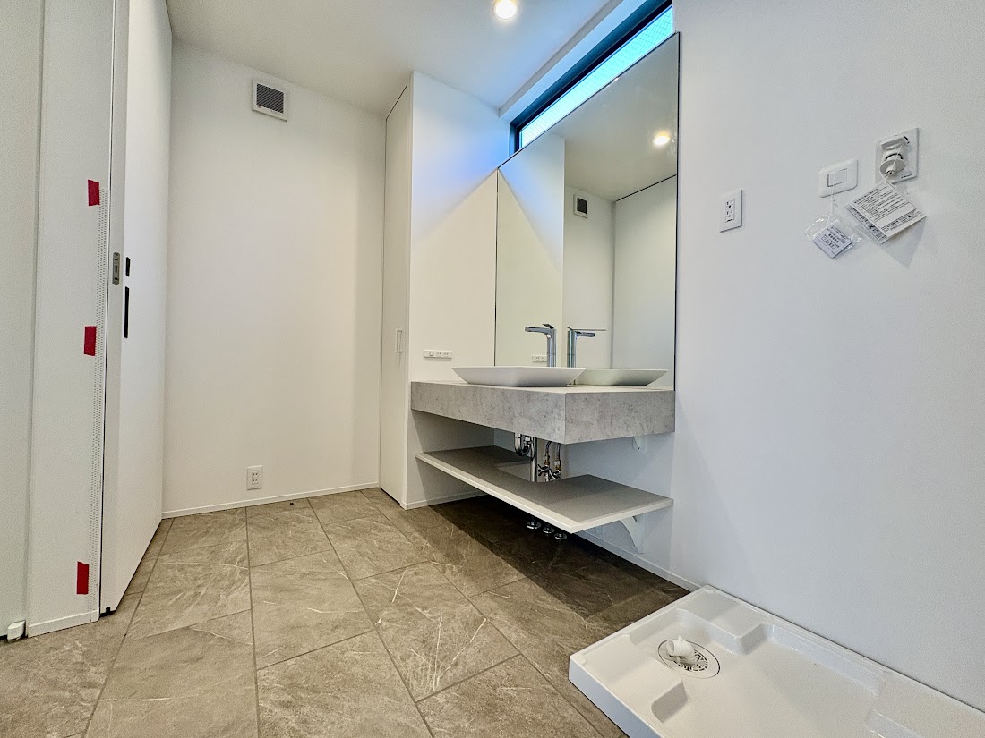 特に、ガレージからバスルームへ直接繋がる動線や、外シャワーの設置は、実際に海でのアクティビティを嗜む方にはたまらない設計です。また、多くの分譲住宅では既製品が使われがちな床材に一部「桜の無垢材」を使用している点に、建築主の深い愛情を感じます。