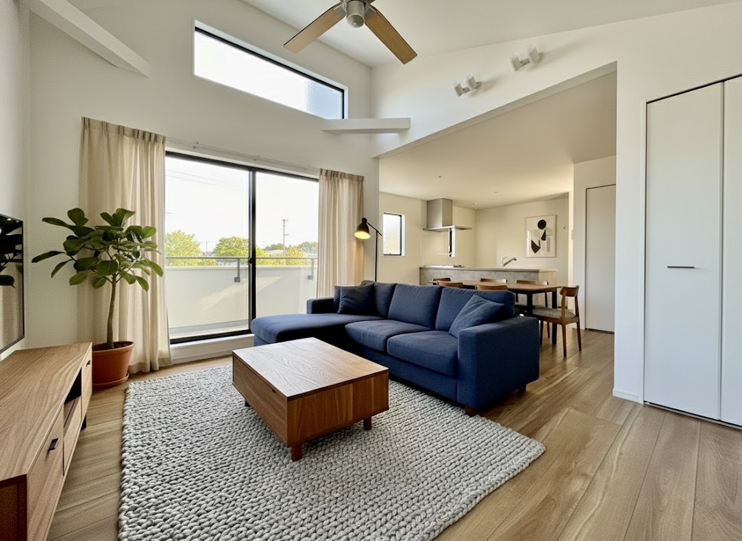 51坪のゆとり 、空へ開く20帖の「高天井リビング」