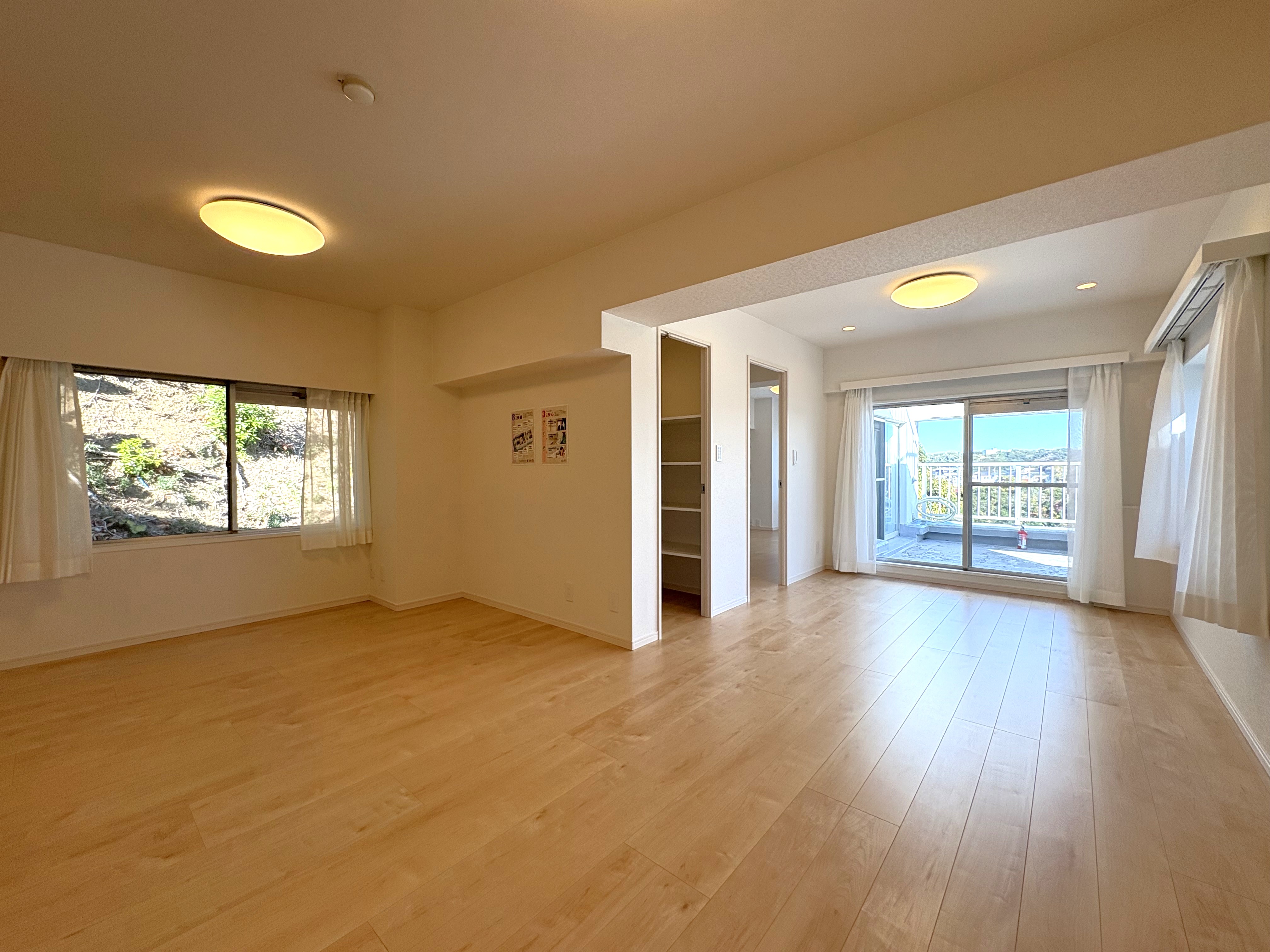 テーブルセットを置いてカフェ風にしたり、趣味の空間にしたりと、使い方は住まう方の自由。浦賀駅徒歩10分という利便性を保ちつつ、これほどの開放感を得られる素敵な物件です。