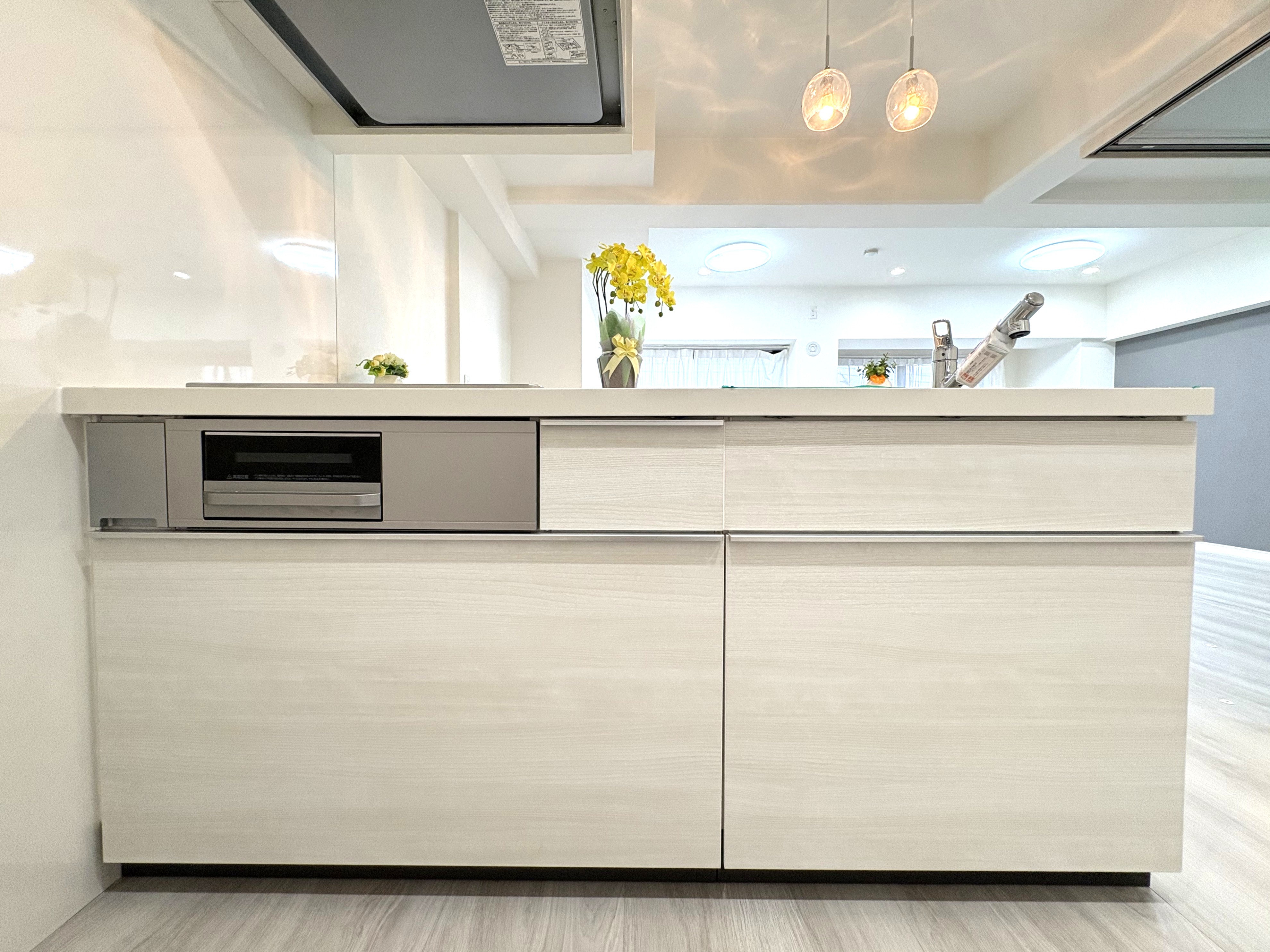 オープンカウンターキッチンでレンジフードも新しいものが据えついております。