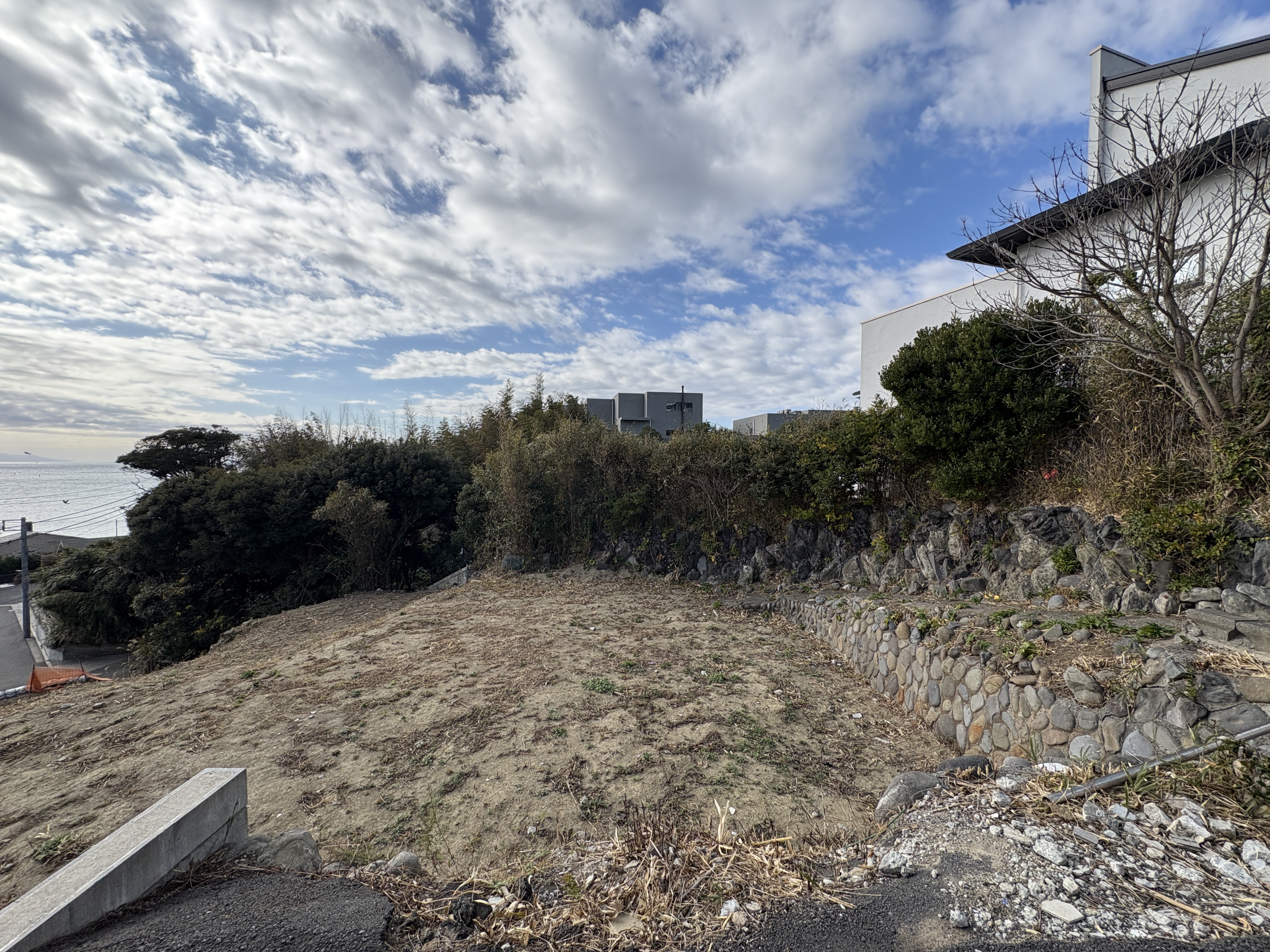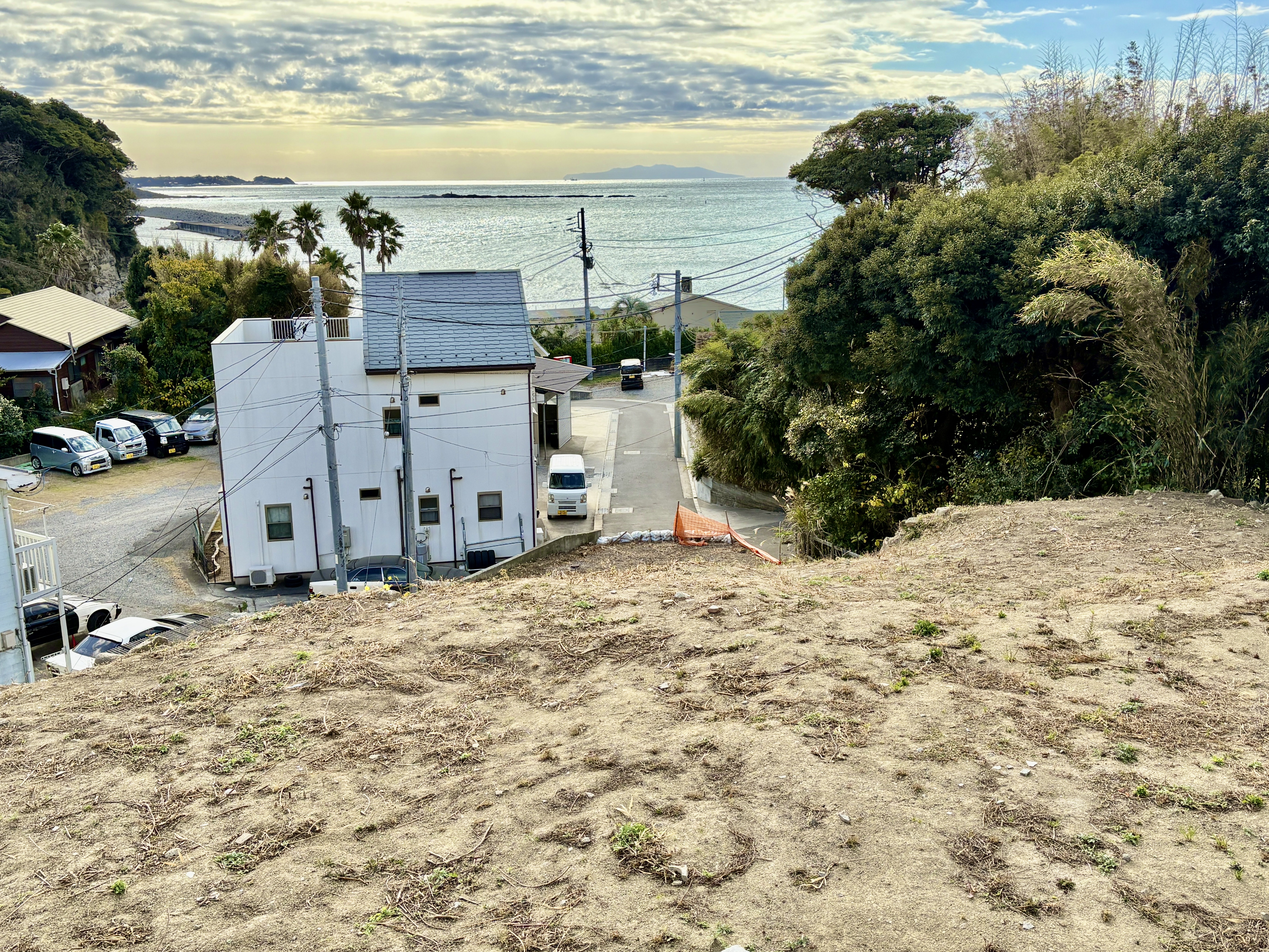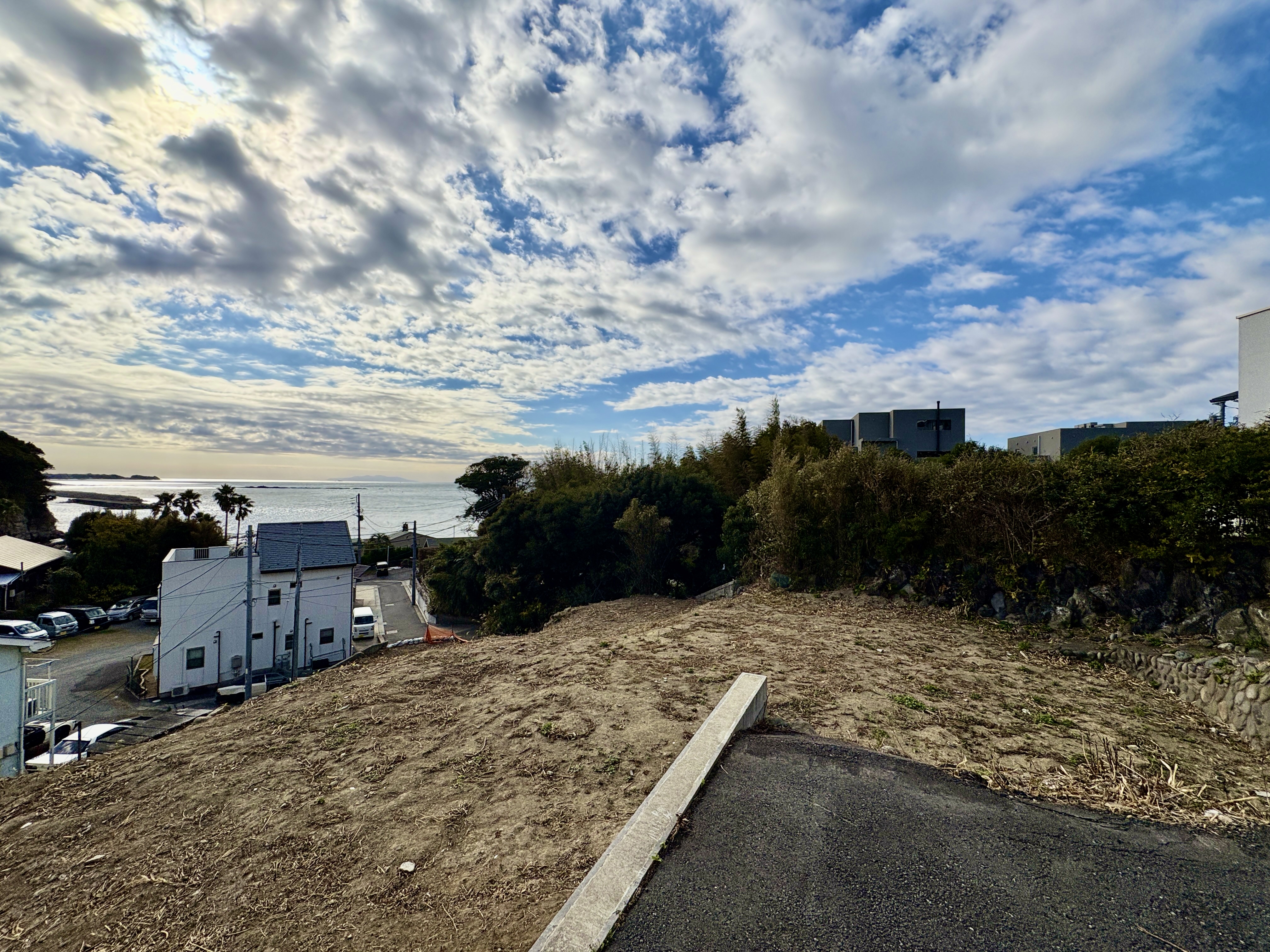 現地からは写真の通り、オーシャンビューのロケーションです。建築条件がございませんので、お好きなハウスメーカーで建築頂けます。