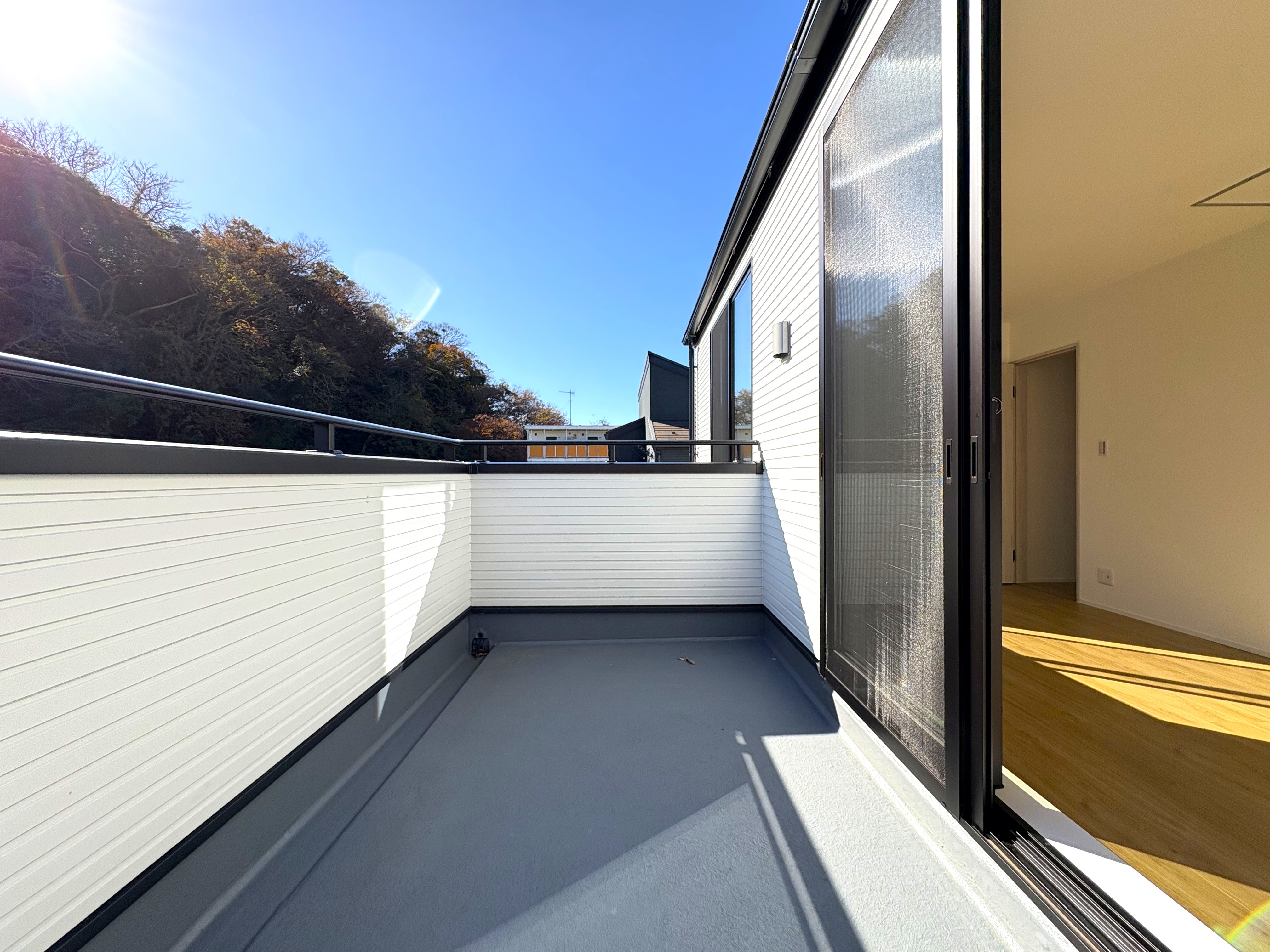 ゆったりとしたバルコニーからは、心地よい風を感じられます。