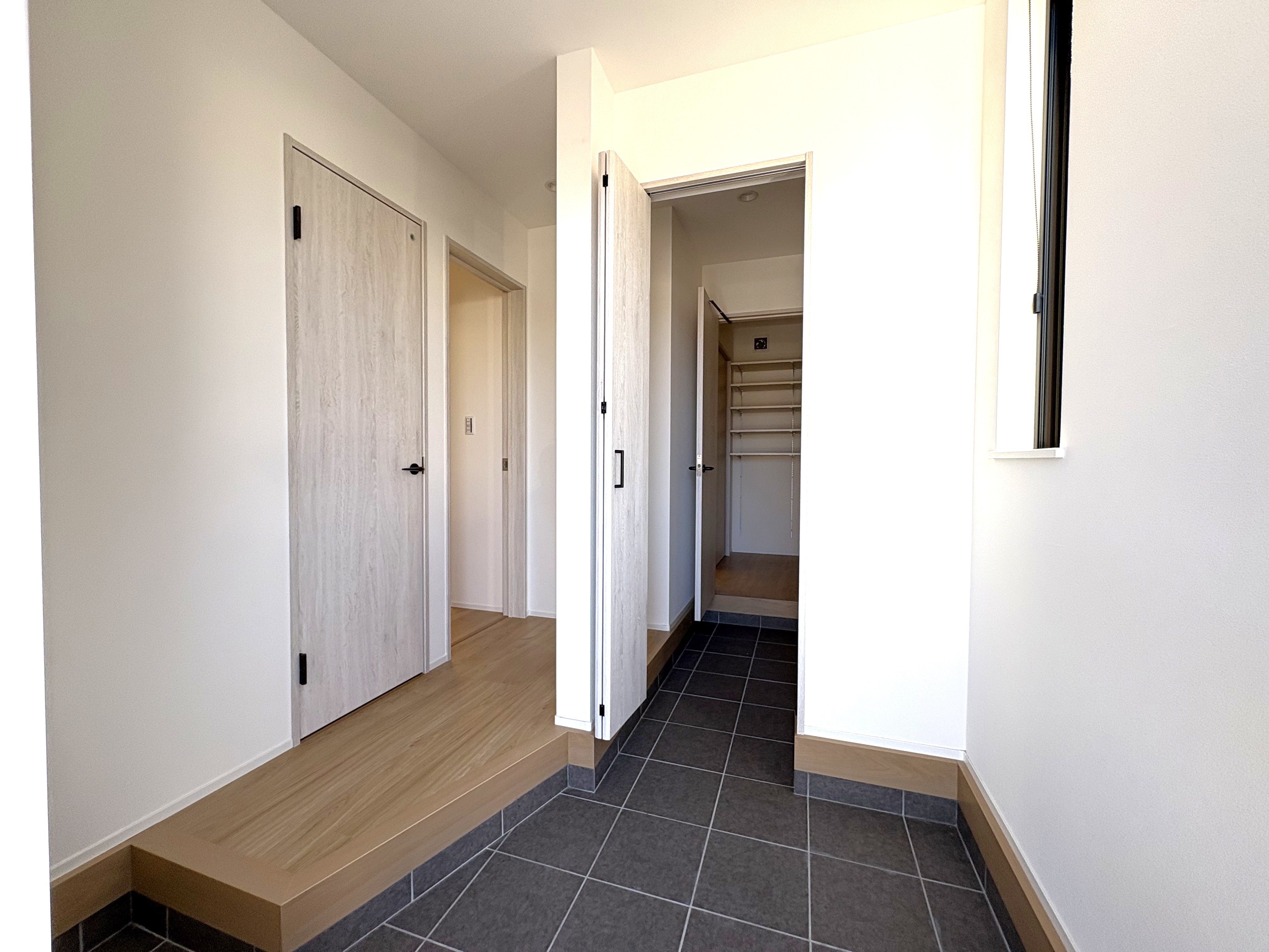 室内に入ると、広い玄関には大容量のシューズインクローゼット(SIC)があり、いつもすっきりとした空間を保てます。