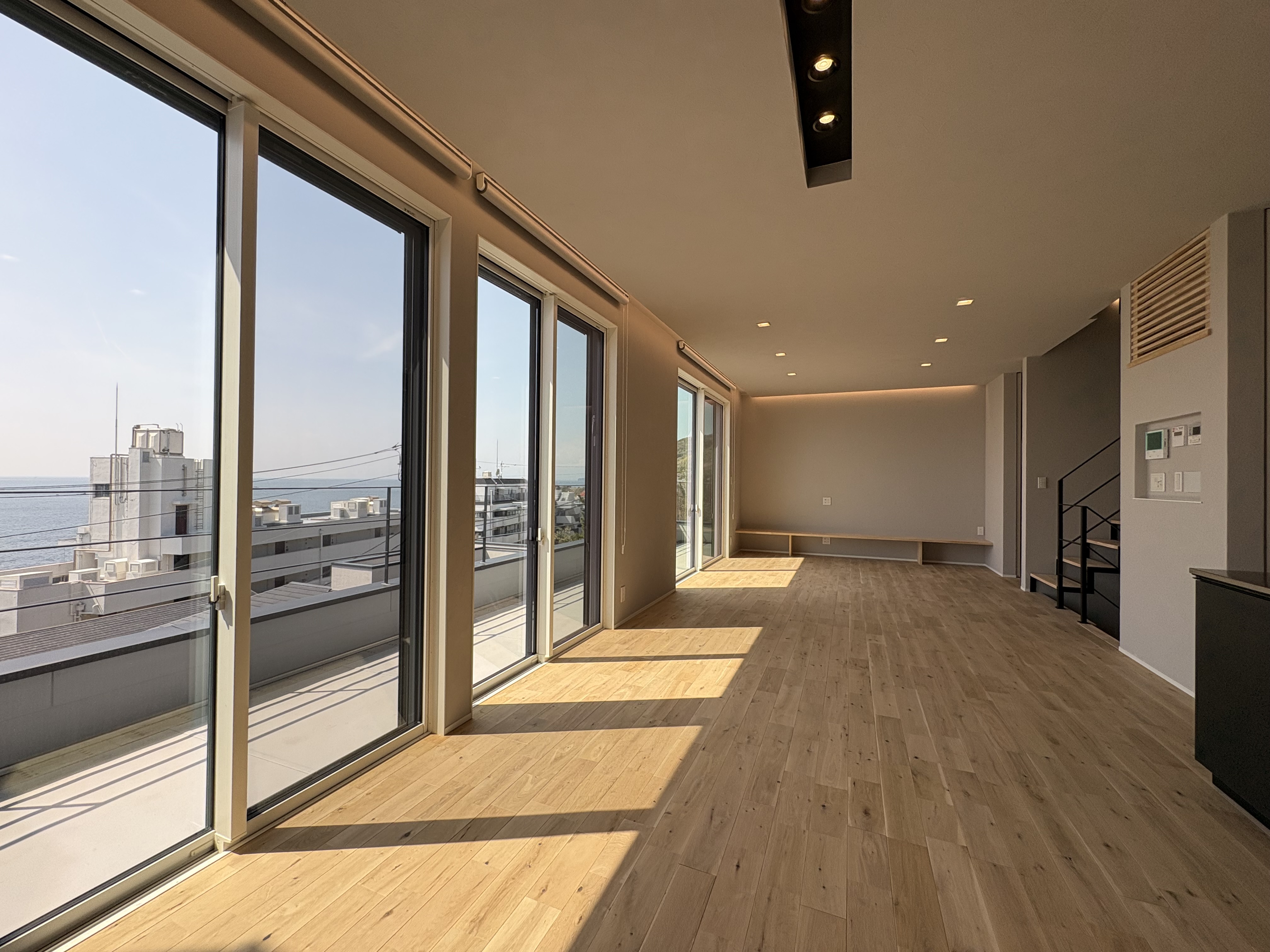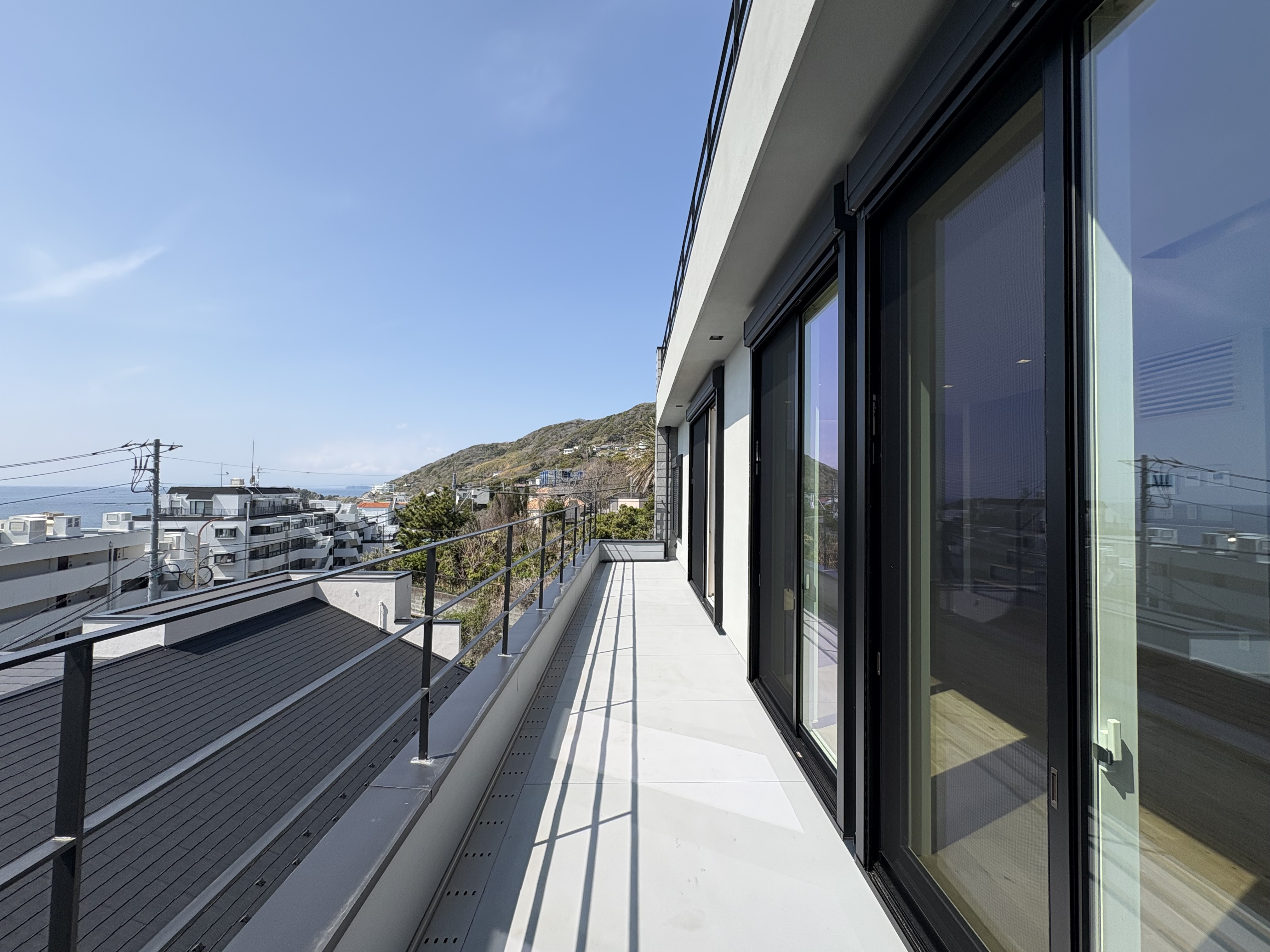 1階、2階、屋上どこからでも海を望みますが、階を上がるごとに景色が開け、眼前に広がる水平線に加えて、視線の先には富士山と江ノ島。