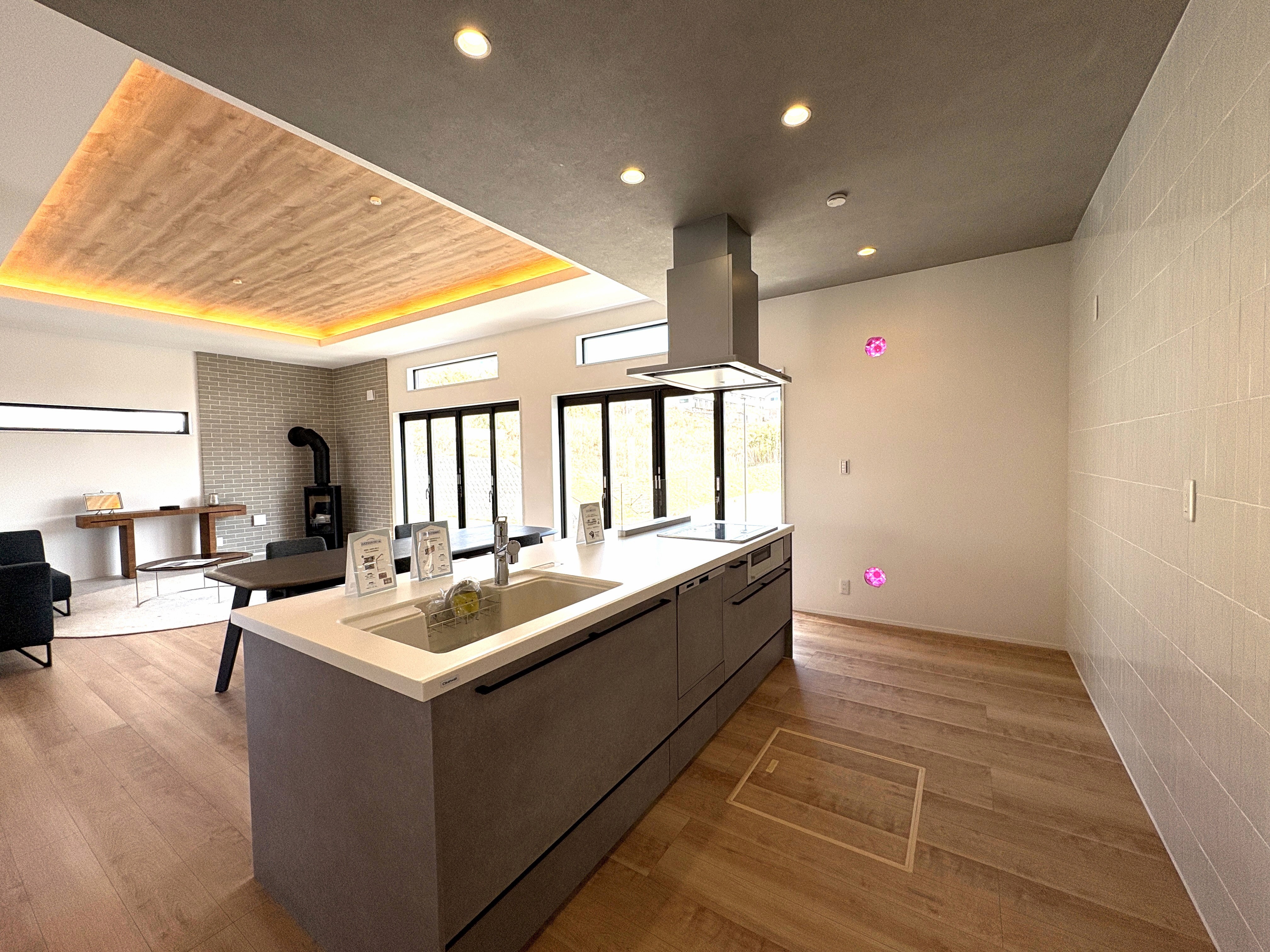 アイランドキッチンを採用した約29帖のLDK、