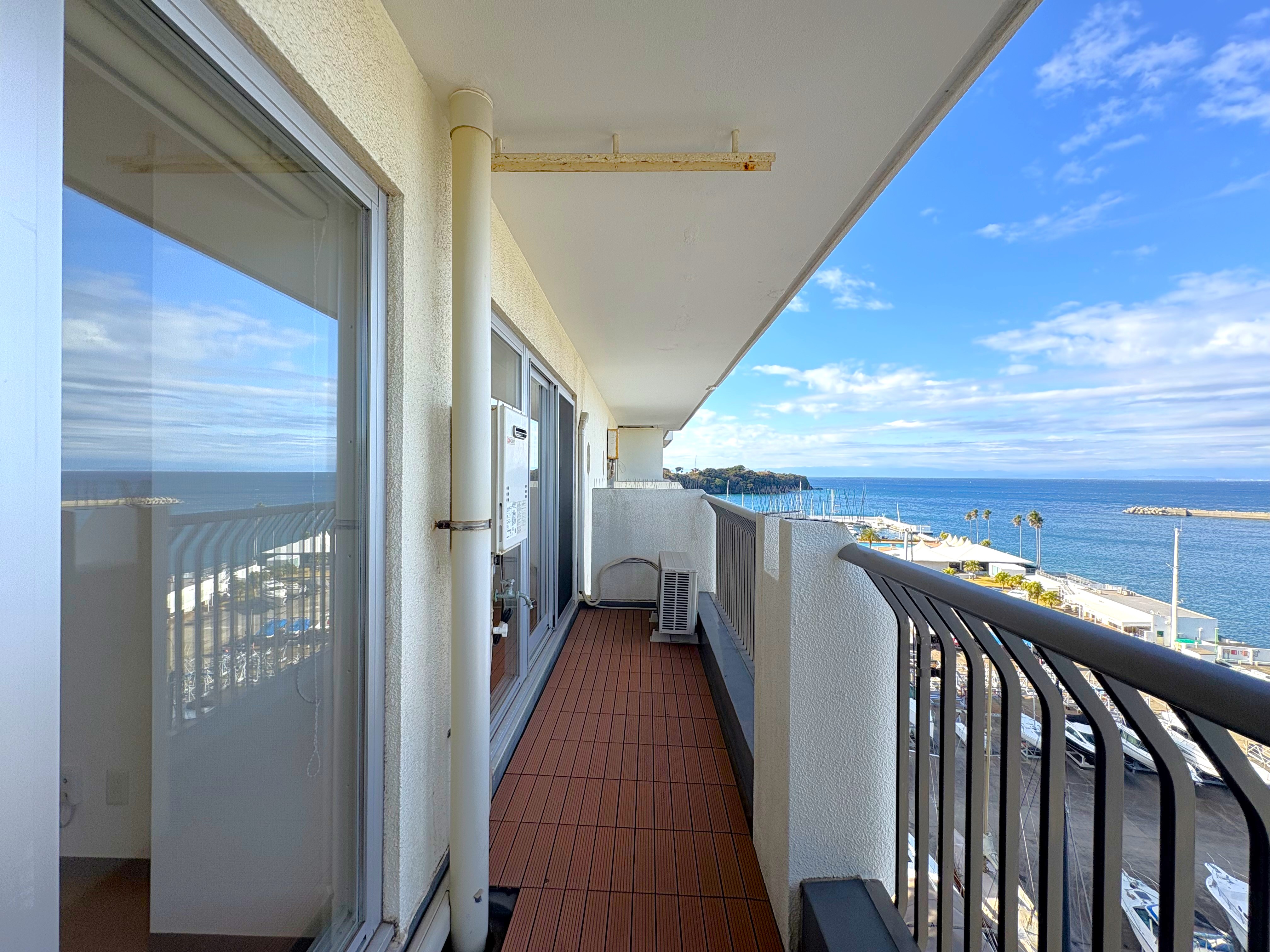 バルコニーに立てば目の前にはマリーナの風景が広がり、ヨットと青い海が。