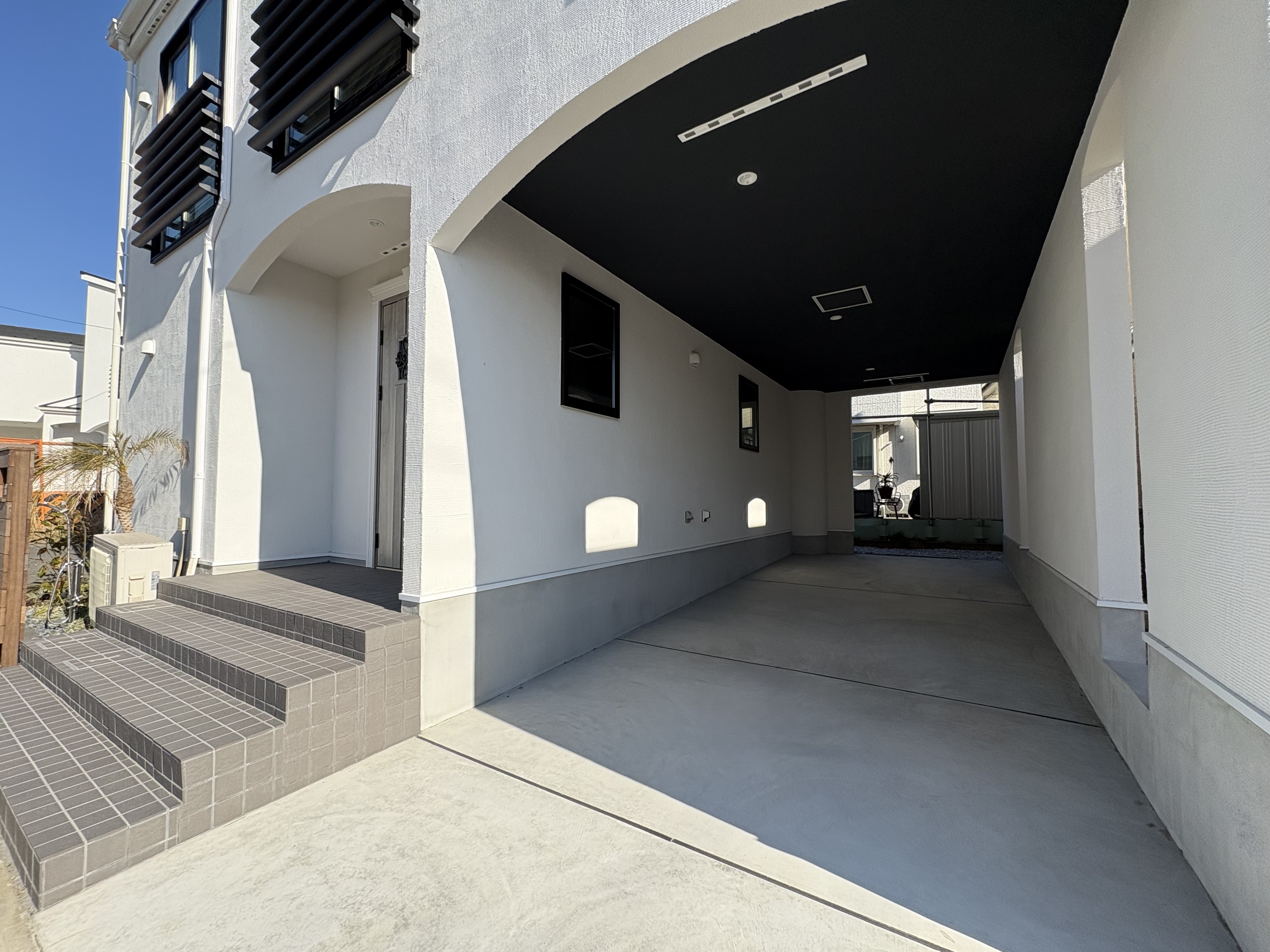 車庫はビルトインガレージで、嬉しい外シャワー付き。