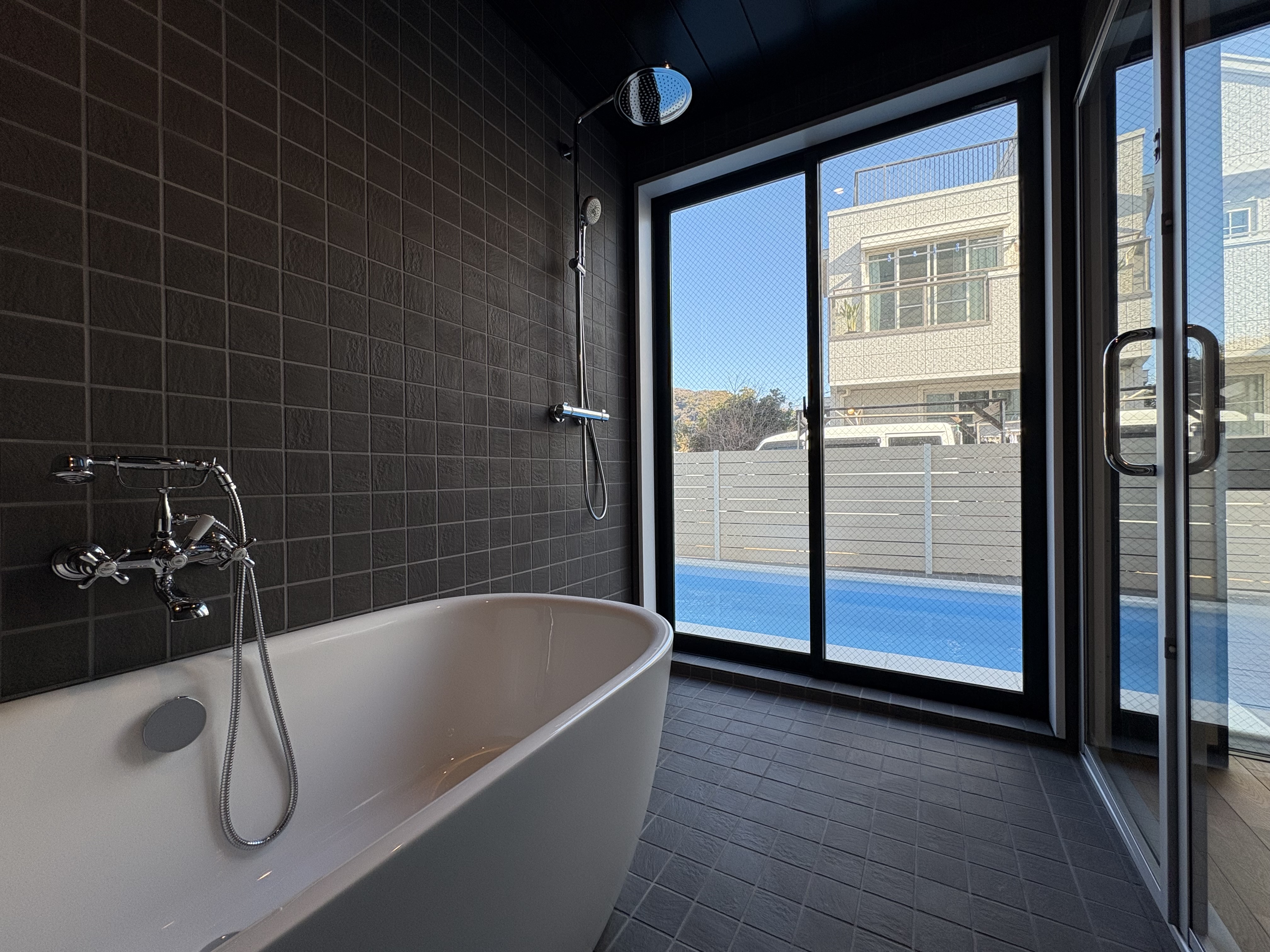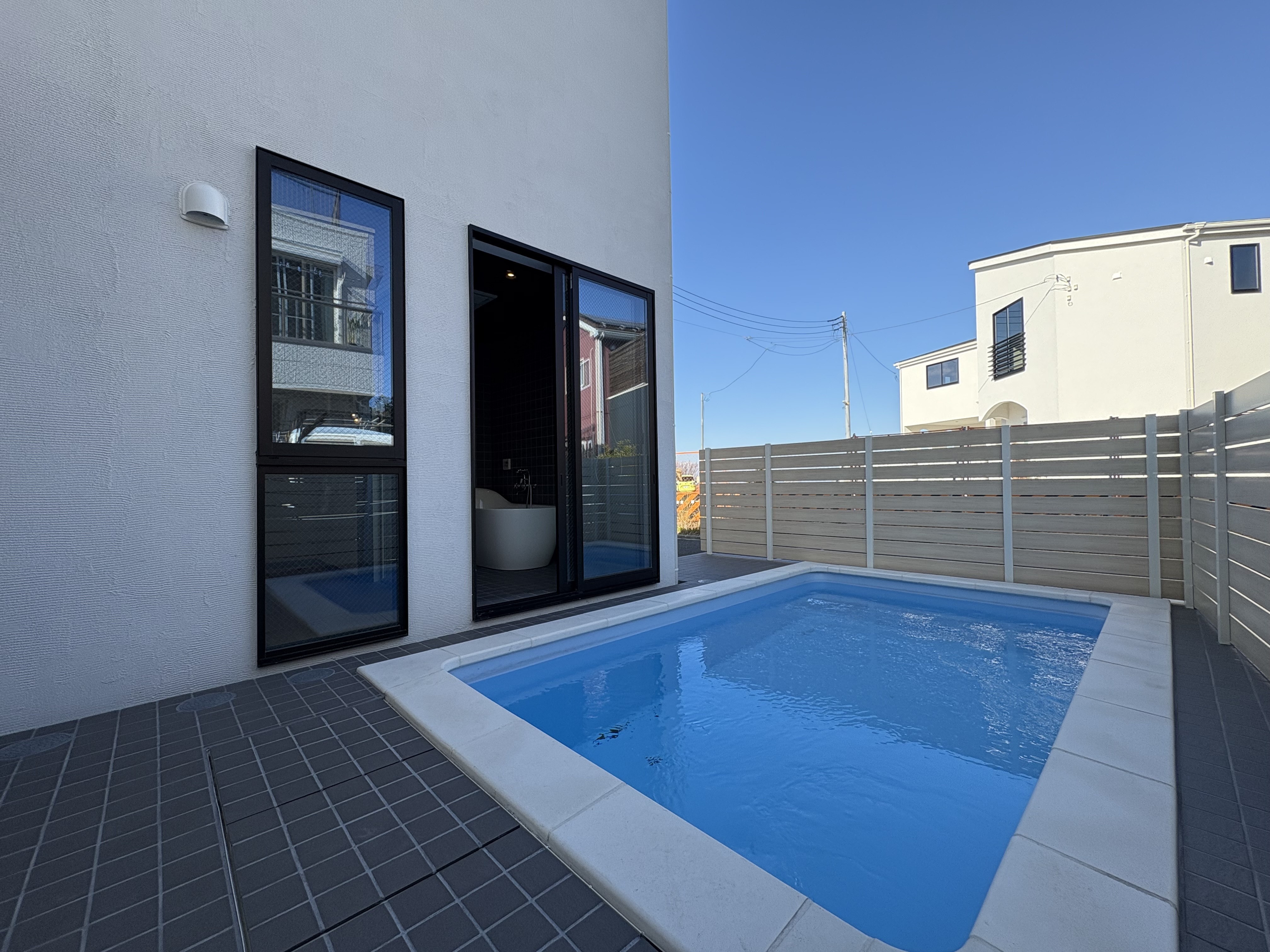 大型リビング26帖超とガレージのあるプール付きデザイナーズハウス