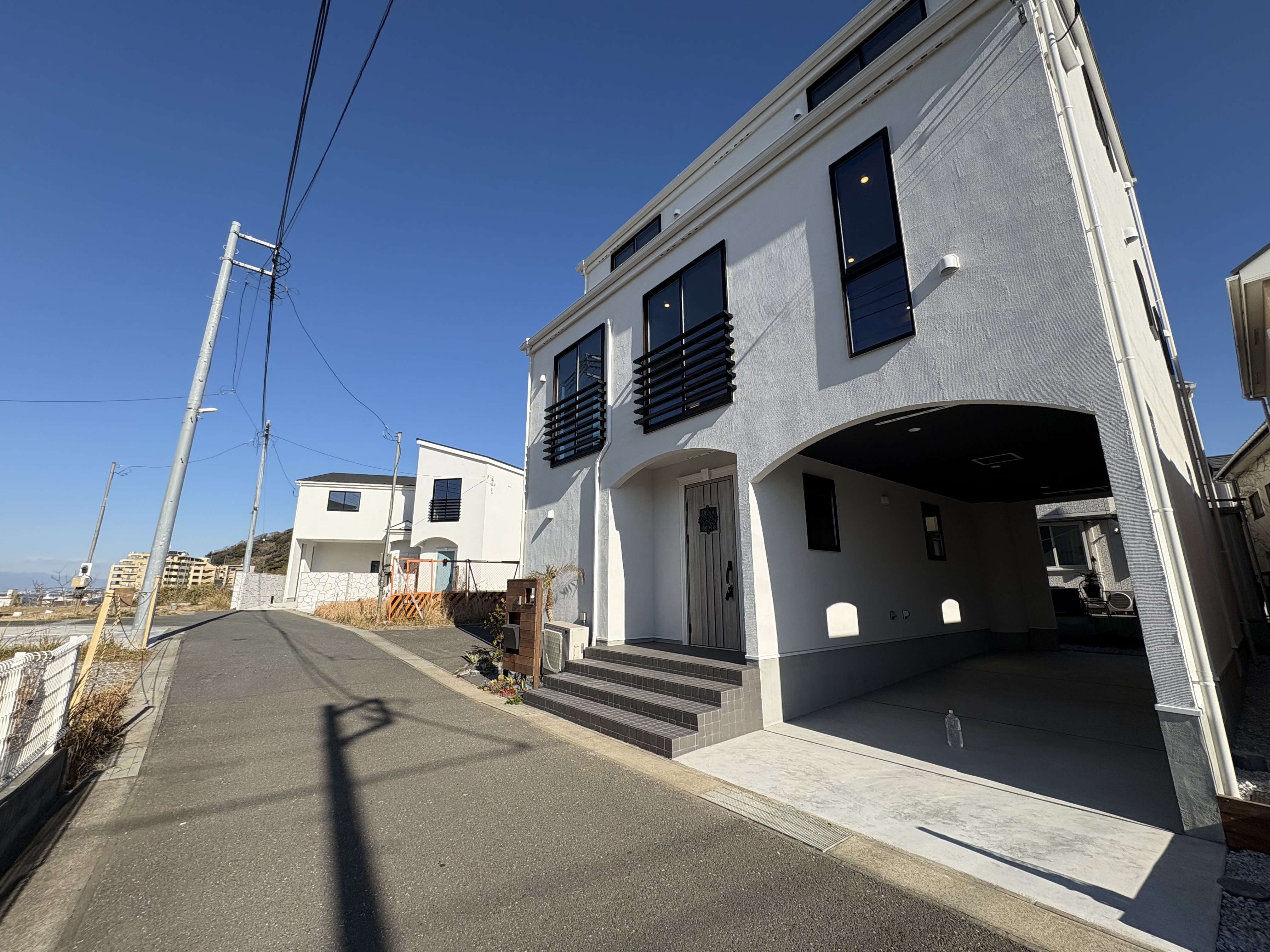 別荘地として愛される秋谷エリアで、26帖超の大型LDKとガレージを備えた新築戸建です。2台分の駐車スペースも確保。デザイナーズ住宅ならではの意匠と、自然豊かな環境が調和した心地よい住まいをご提案します。