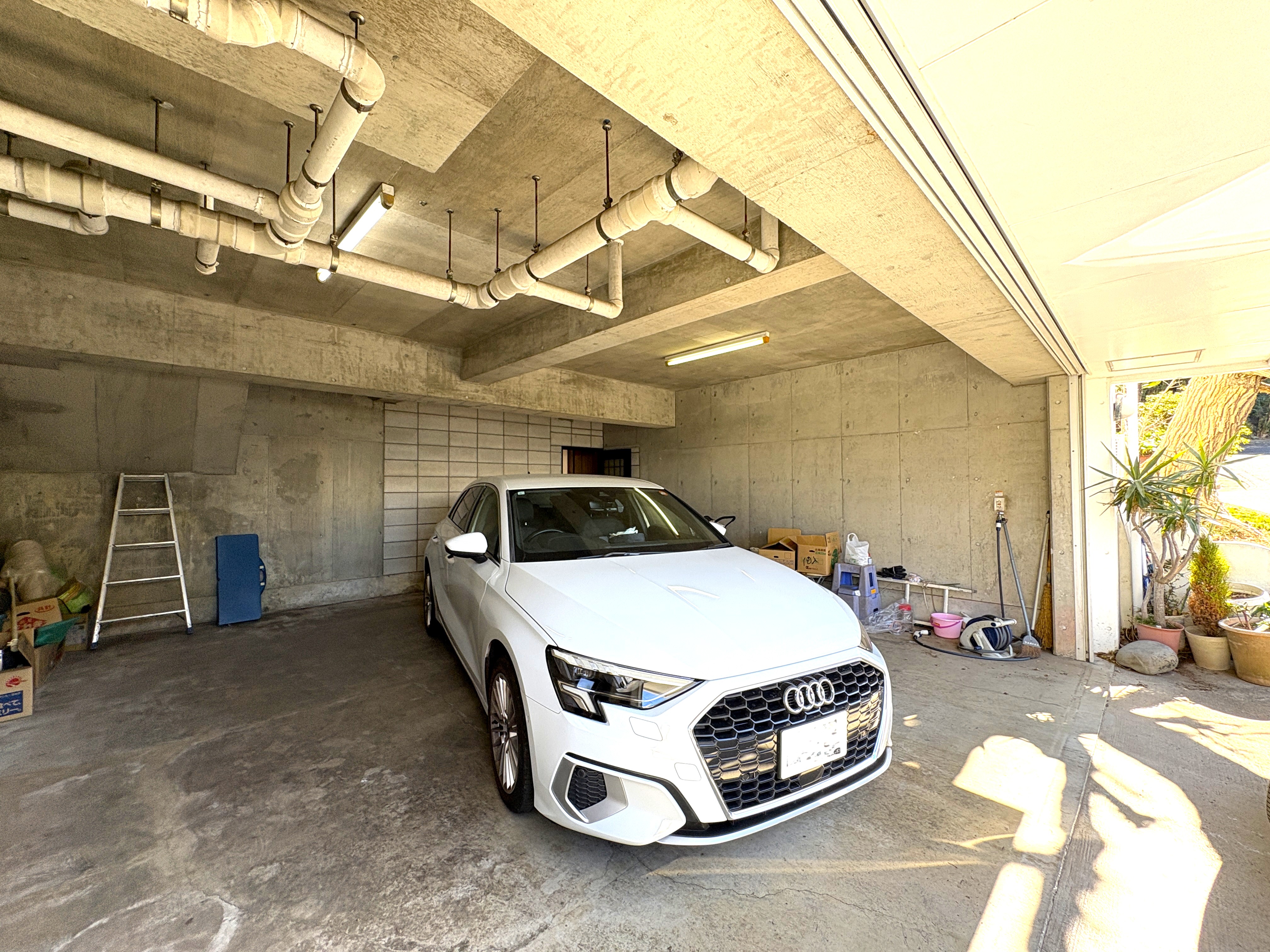 車好きの方でも安心なシャッター付きの地下ガレージは並列2台可能なゆとりがあり、大型の車も安心。