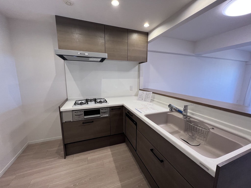 お部屋は2026年3月にリフォームを終えたばかりの清潔感あふれる空間です。L字型の対面キッチンには食洗機と浄水器を完備し、家事の時間をより快適にサポートします。浴室には追い焚き機能や換気乾燥機を備えるなど、水まわり設備も一新されています。さらに、給水・給湯・排水管の交換まで実施されており、見えない部分まで配慮が行き届いているのも安心のポイントです。